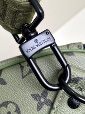 This Keepall Bandoulière 55 from the Monogram Tones capsule is made from Monogram canvas in a new colorway. The bag’s dominant khaki-green Monogram is contrasted with touches of bright-red Monogram canvas, on the removable name tag for example. A practical travel bag, this Keepall has a removable and adjustable shoulder strap.