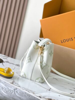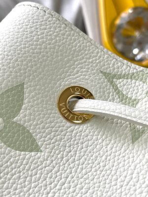 Inspired by colors of early spring, the pastel colorway of the Monogram Empreinte leather, with the LVs and Monogram Blossoms embossed and printed onto the cowhide, bring a delicate feel to this Néonoé BB bucket bag. The interior features matching lining and a central pocket that closes with a press stud.