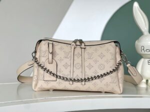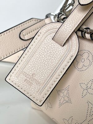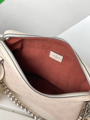 This small Mahina Hand It All bag is made of fine perforated cowhide leather, with an elegant draped texture that highlights the chic silhouette. The leather shoulder strap and chain and leather braided handles are both detachable, providing a trendy choice for daily travel.