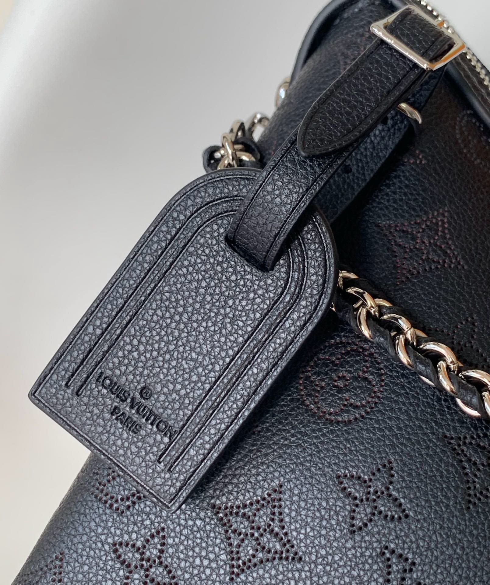 This medium Mahina Hand It All bag is made of fine perforated cowhide leather, with a soft draped texture that highlights the chic silhouette. The delicate shoulder strap and chain and leather braided handles are both detachable, providing a trendy choice for daily travel.