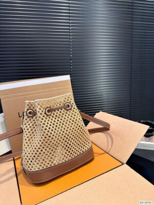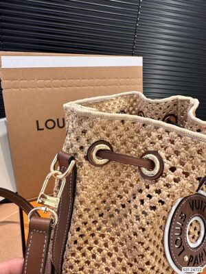 This Noé BB bucket bag seamlessly merges two distinct crafts: natural raffia, hand-crocheted by skilled artisans from Madagascar, complemented by luxurious leather trim, expertly crafted by Louis Vuitton leather artisans. The harmonious fusion of these materials not only give the Noé BB a distinct personality but also a comfortable suppleness.