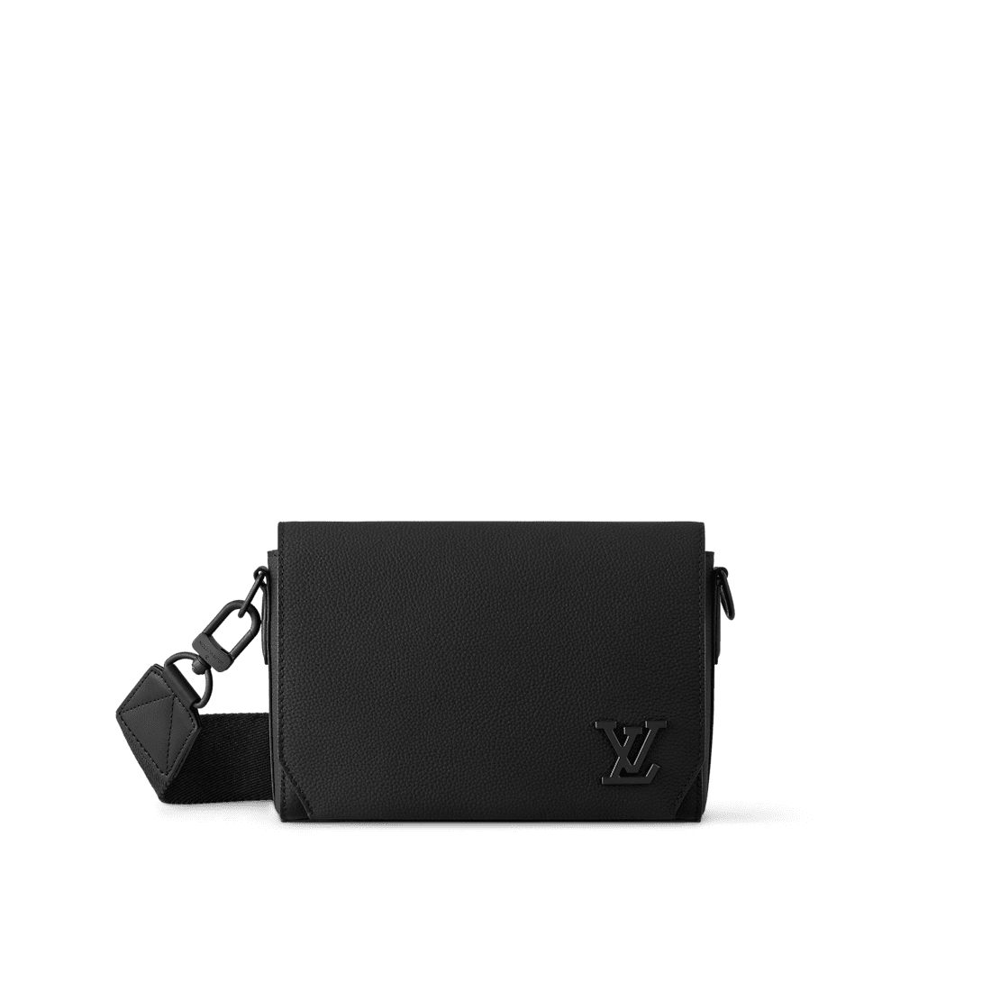 Made from cowhide leather, this small Takeoff messenger bag features a blunt-angle flap and LV logo, a signature element of the LV Aerogram collection. The close-fitting shape and wide detachable shoulder strap make it a great choice for everyday travel.