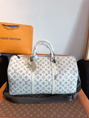 Monogram Shadow calfskin gives this Keepall Bandoulière 50 travel bag a sporty feel. The Monogram pattern is first embossed into the soft calfskin, and then the motif is printed on top in a contrasting color. The process gives depth to the design. The roomy Keepall 50 can be taken onto the plane as carry-on luggage.