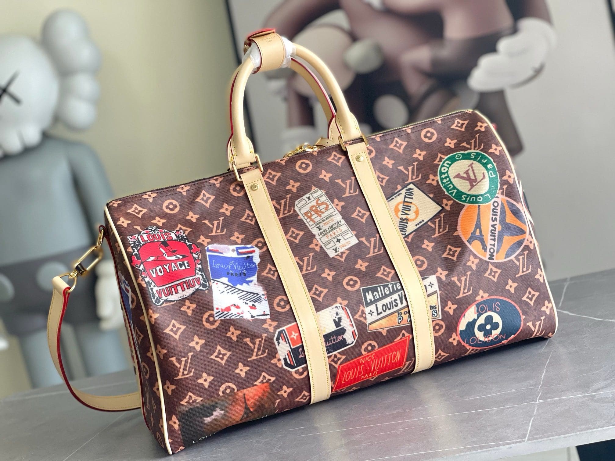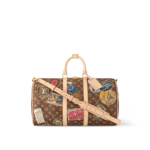 Made from Monogram canvas, the Keepall Bandoulière 45 is adorned with Louis Vuitton travel stickers, giving the bag a glamorous tried-and-true feel, perfect for any traveler. The natural cowhide leather trim adds yet another vintage detail. This cabin-size bag can be carried by its two top handles, or with its removable and adjustable shoulder strap.