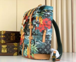 Inspired by the classic rucksack, the Christopher MM backpack is made from Pharrell Williams’ Monogram Surfin’ canvas. The print on the canvas combines layers of elaborate motifs – including surfboards and flowers – for a colorful vintage feel. This body-friendly, high-capacity backpack offers an array of compartments, including two outside side pockets.