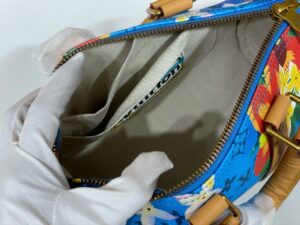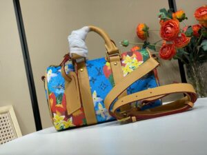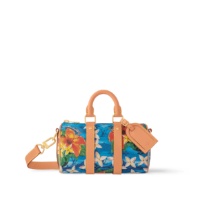 The Keepall Bandoulière 25 is a smaller version of Louis Vuitton’s famous Keepall travel bag. It’s made from Pharrell Williams’ Monogram Surfin’ canvas, with its intricate print combining different summery motifs. The bag’s design and tropical print give this city bag a vintage feel. A detachable strap and two rolled-leather top handles enable carry options.