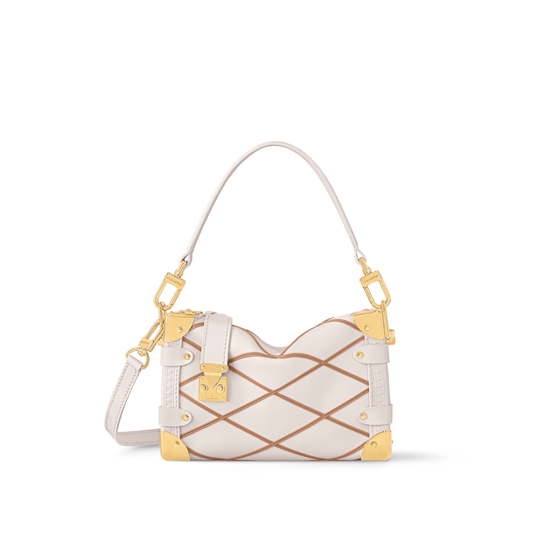 The Side Trunk PM handbag showcases the Maison’s iconic crisscross Malletage pattern. Made from supple lambskin with contrast stitching, the bag also features a heritage S-lock and reinforced trunk-style corners. With a leather handle and strap which are both detachable, the bag can be styled in a variety of ways.