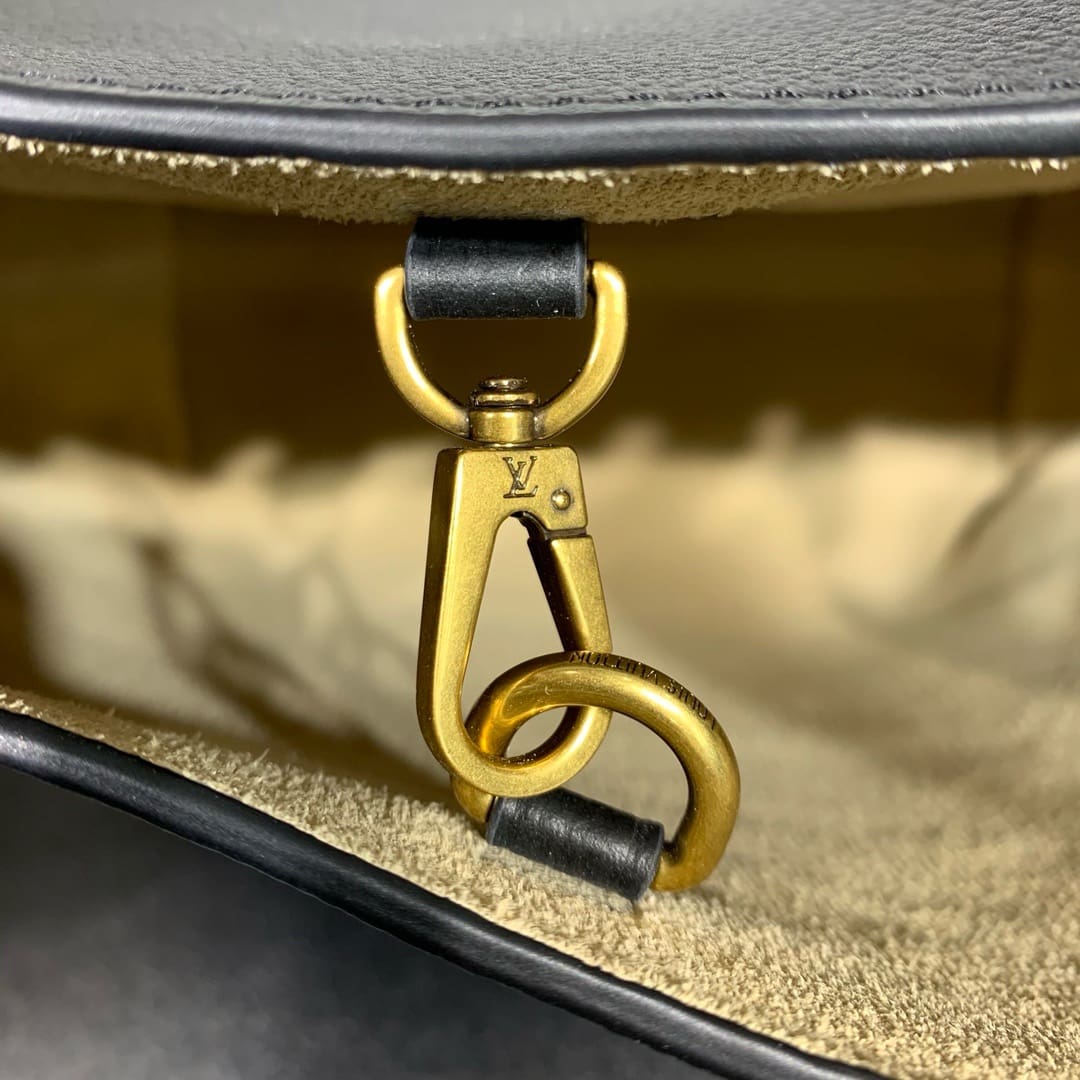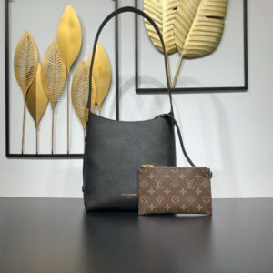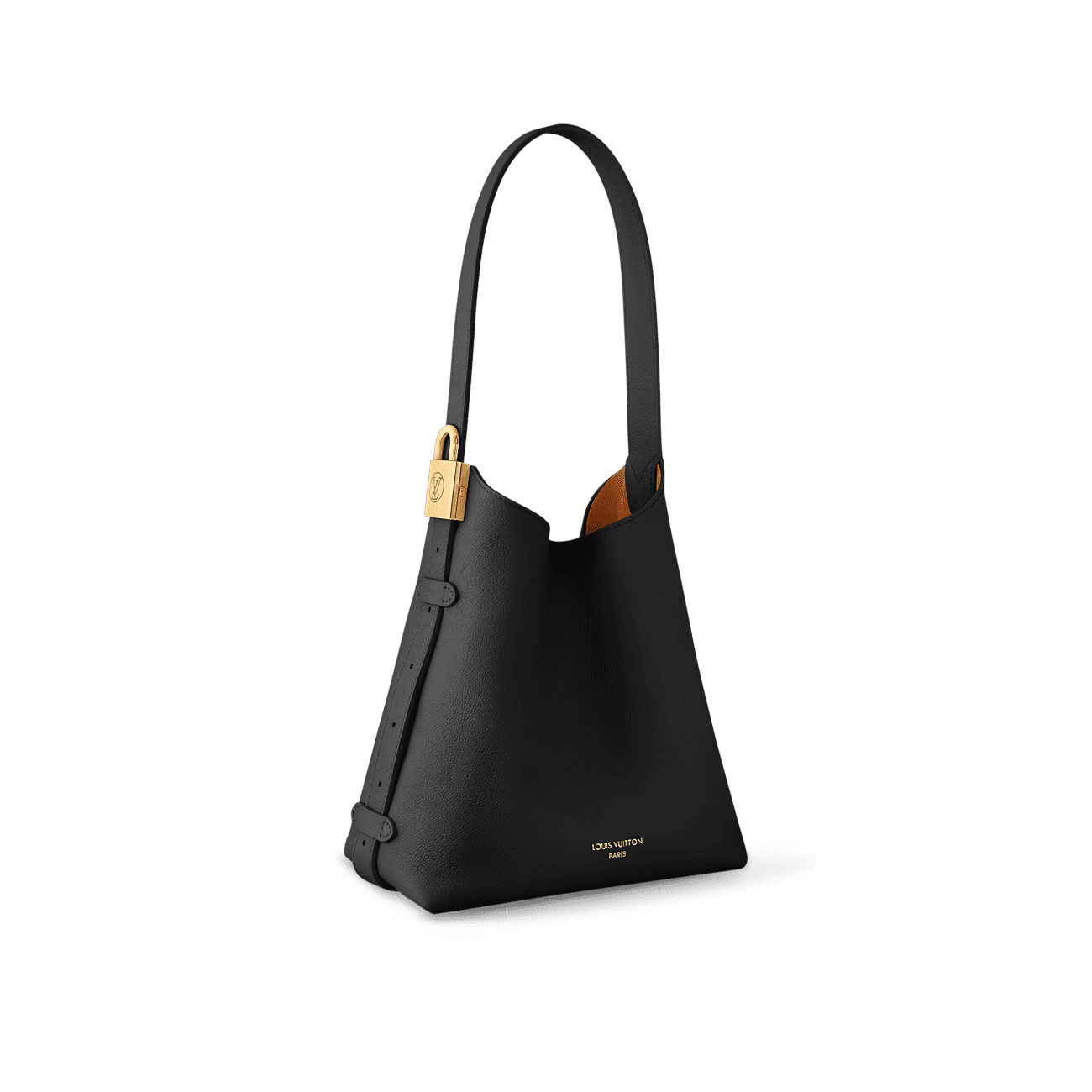 The supple Low Key Hobo PM bag is made from smooth calfskin with suede-calfskin lining. Its unique design includes a single strap that adjusts with a padlock buckle. The interior includes a removable zipped pouch in Monogram canvas to keep things organized. This bag can fit a compact wallet, large smartphone, keys, and other smaller belongings.