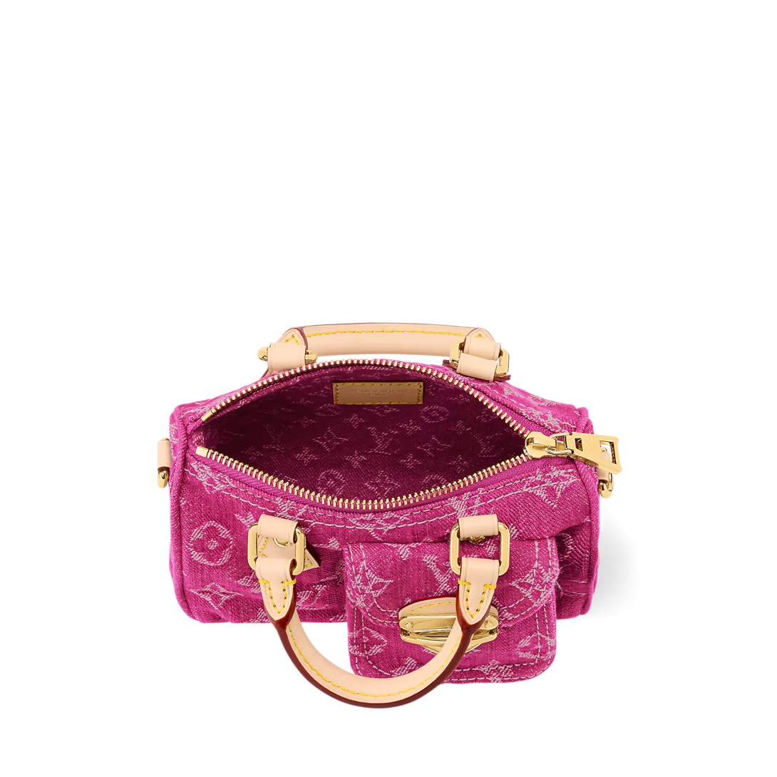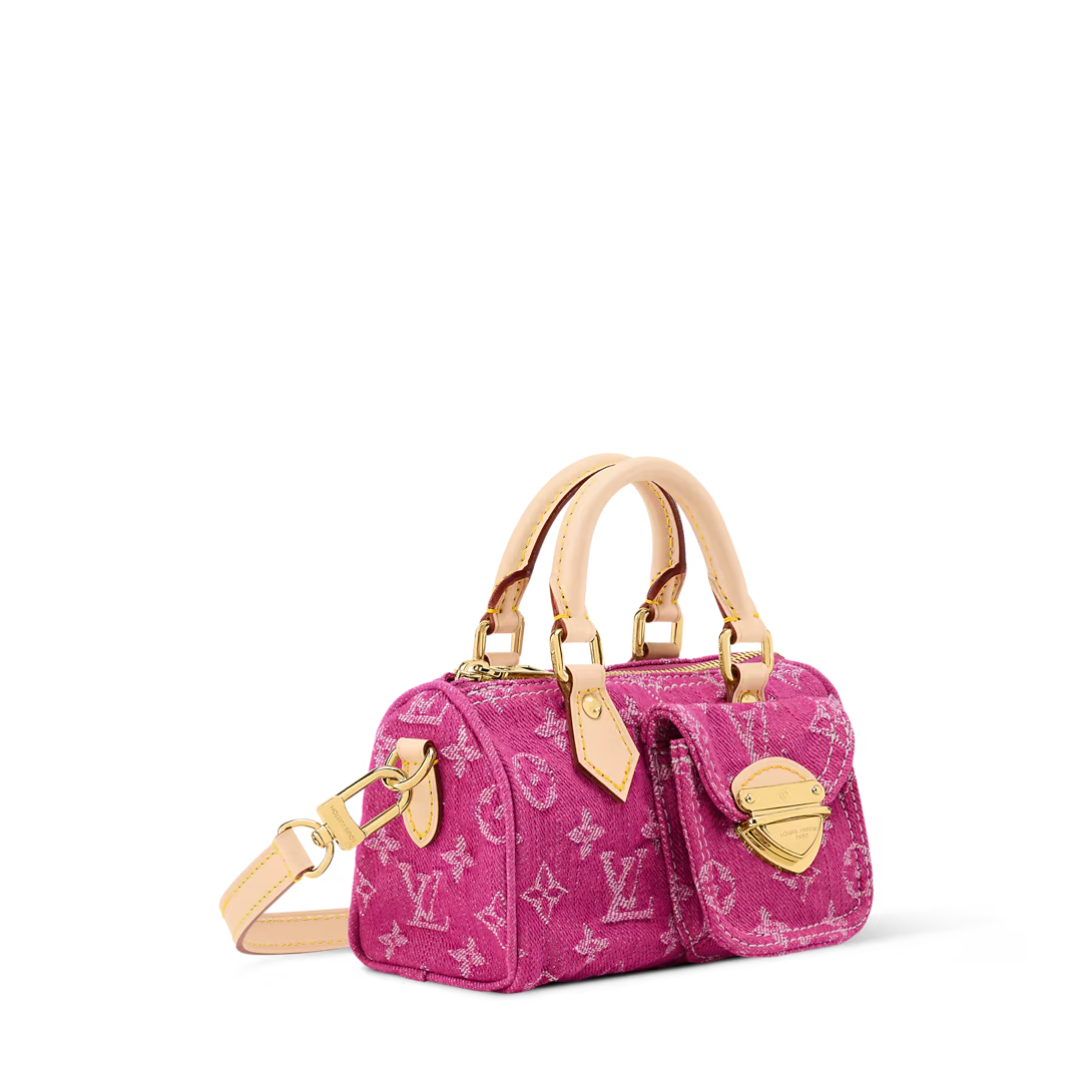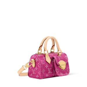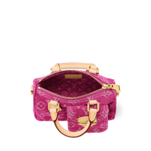 It is offered in a statement Fuchsia colorway, patterned with the House’s signature Monogram with contrasting cowhide trims. The gold-toned tuck-lock lends an elegant finish, and secures the front pocket, which is ideal for keeping smaller valuables within close reach. It can be worn cross-body, over one shoulder, or carried by hand.
