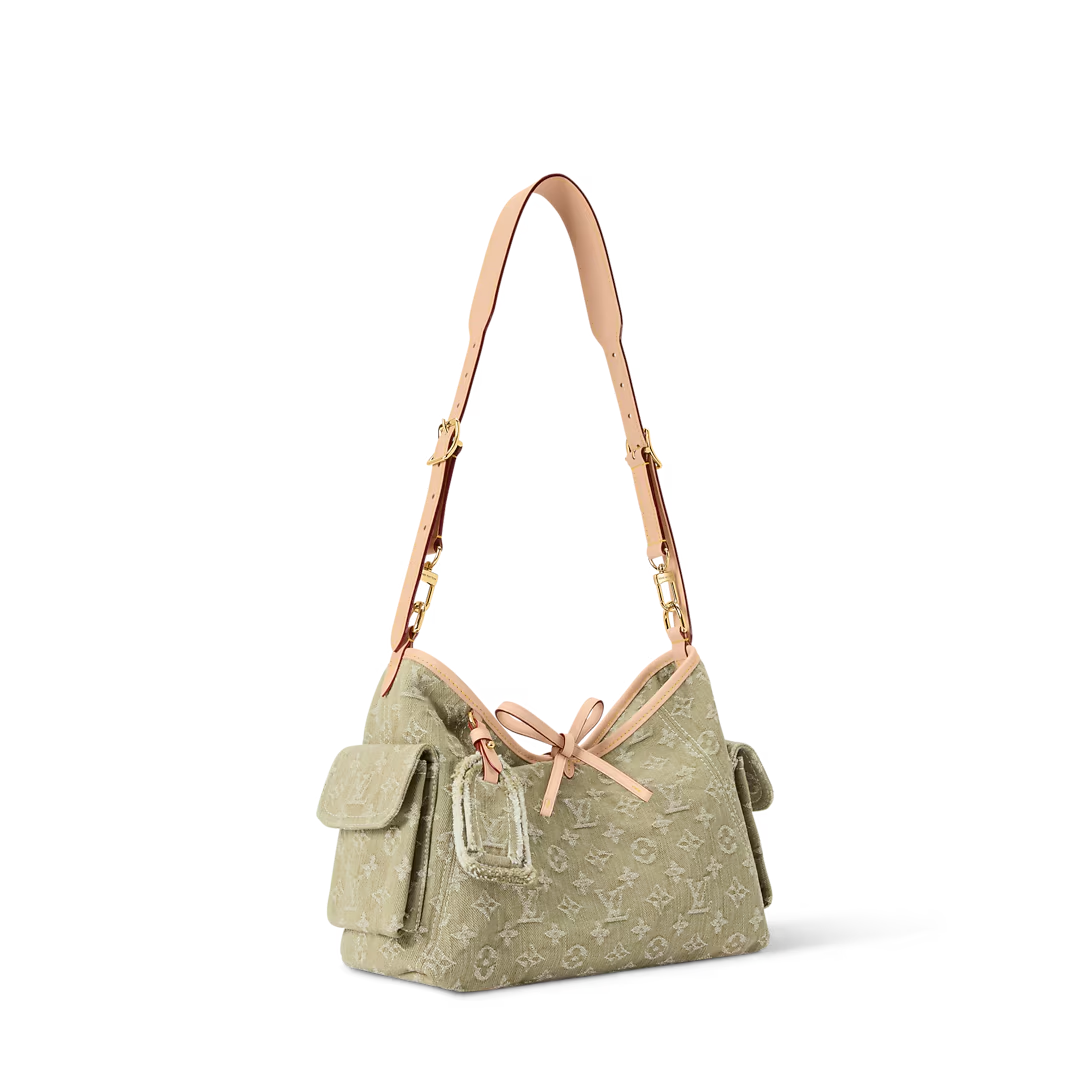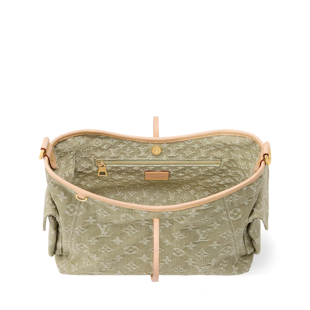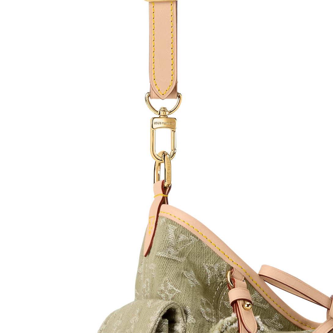 Part of the Denim Rendez-Vous collection, this Carryall Cargo PM is a seasonal take on the timeless style. It is crafted from cotton and trimmed with a contrasting leather strap and lace details. This Khaki edition is adorned with gold-toned hardware and is accented with a signature name tag, paying tribute to the House’s trunk-making heritage. It can be worn cross-body, over the shoulder or carried by hand.