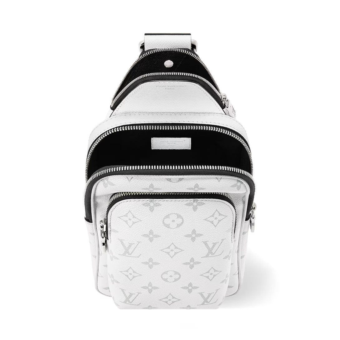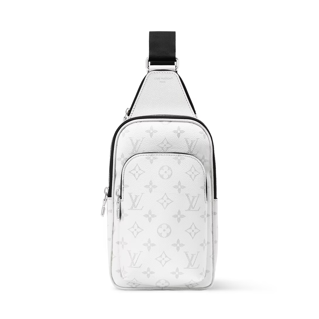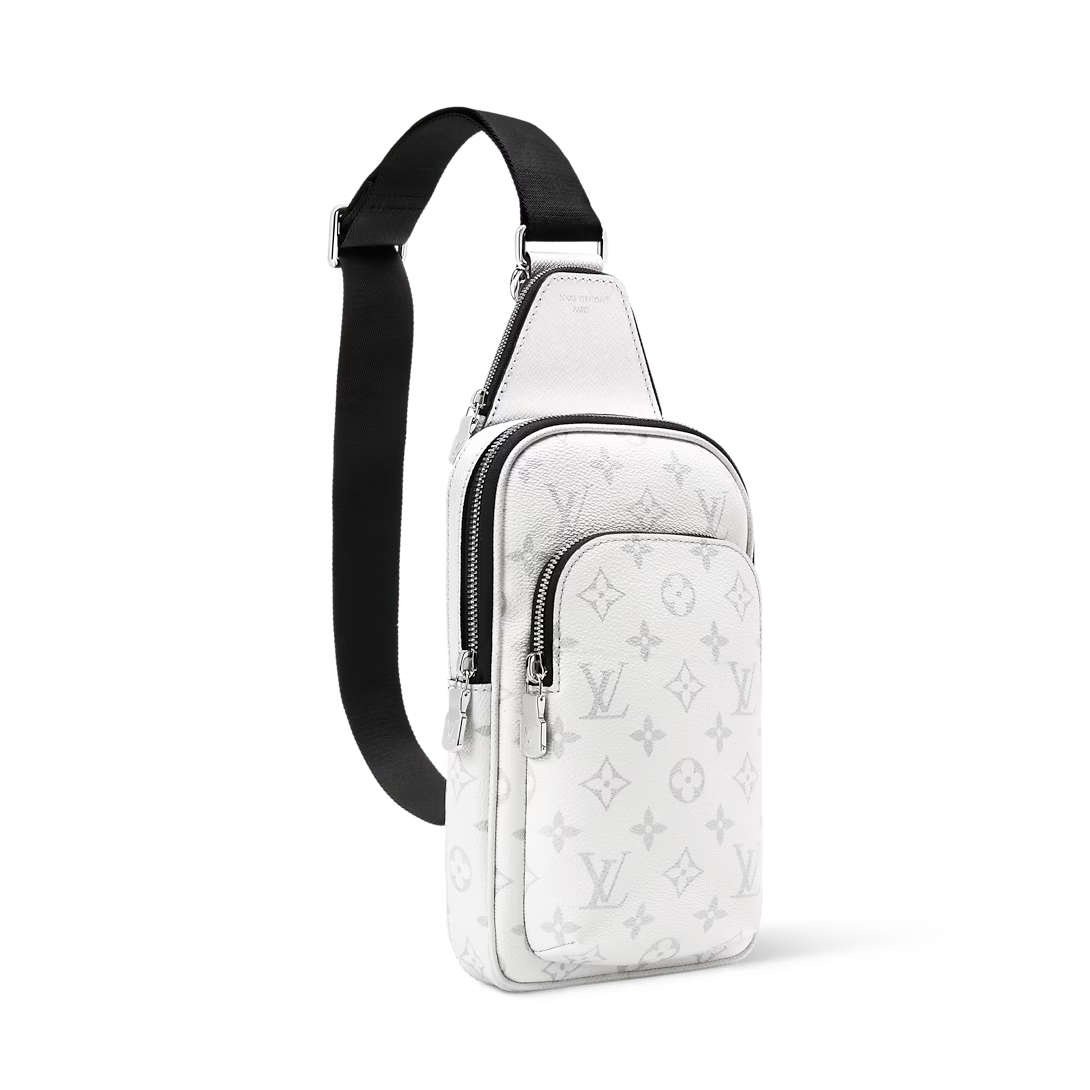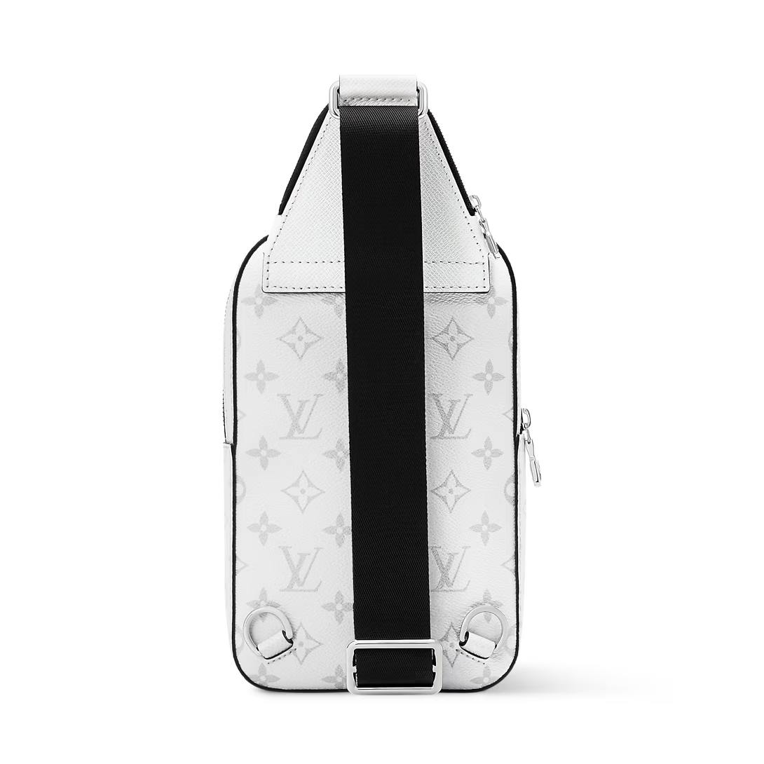 The Avenue Slingbag PM makes a bold statement in tone-on-tone Monogram coated canvas and Taigarama cowhide leather, finished with a black strap. This versatile piece features a spacious main compartment, a zipped front pocket, and a small triangular pocket where the strap meets the bag. An adjustable strap allows for effortless wear on either shoulder.