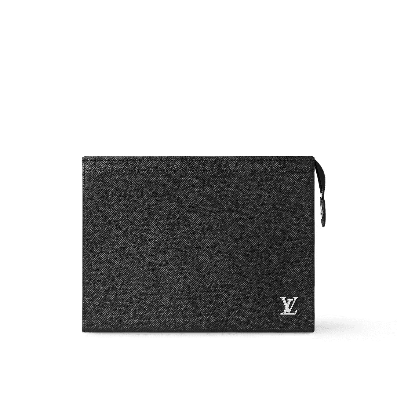The versatile Pochette Voyage in deep-dyed Taiga leather can be used as a bag inside a bag or hand-carried as a document portfolio. Signed with silver-color metallic LV Initials on the lower righthand corner, this understated bag includes an interior flat pocket and 6 card slots to keep essentials in order.
