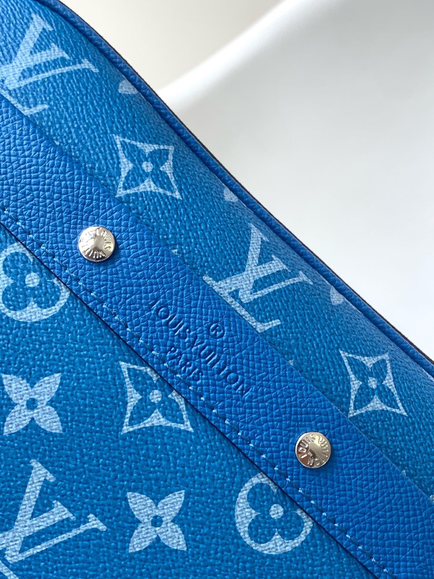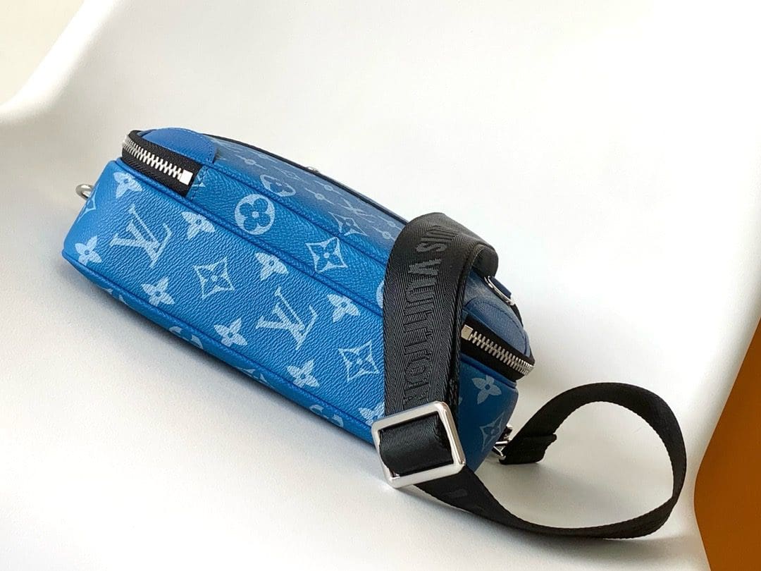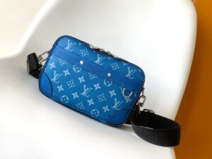 New for 2024, the compact and stylish Alpha Messenger camera bag brings a fresh burst of color to the Taigarama line. Monogram canvas is paired with finely embossed Taiga cowhide in a vibrant shade of blue, with signature rivets for an extra House touch. With its two secure zipped compartments, it’s a cool and casual everyday bag.