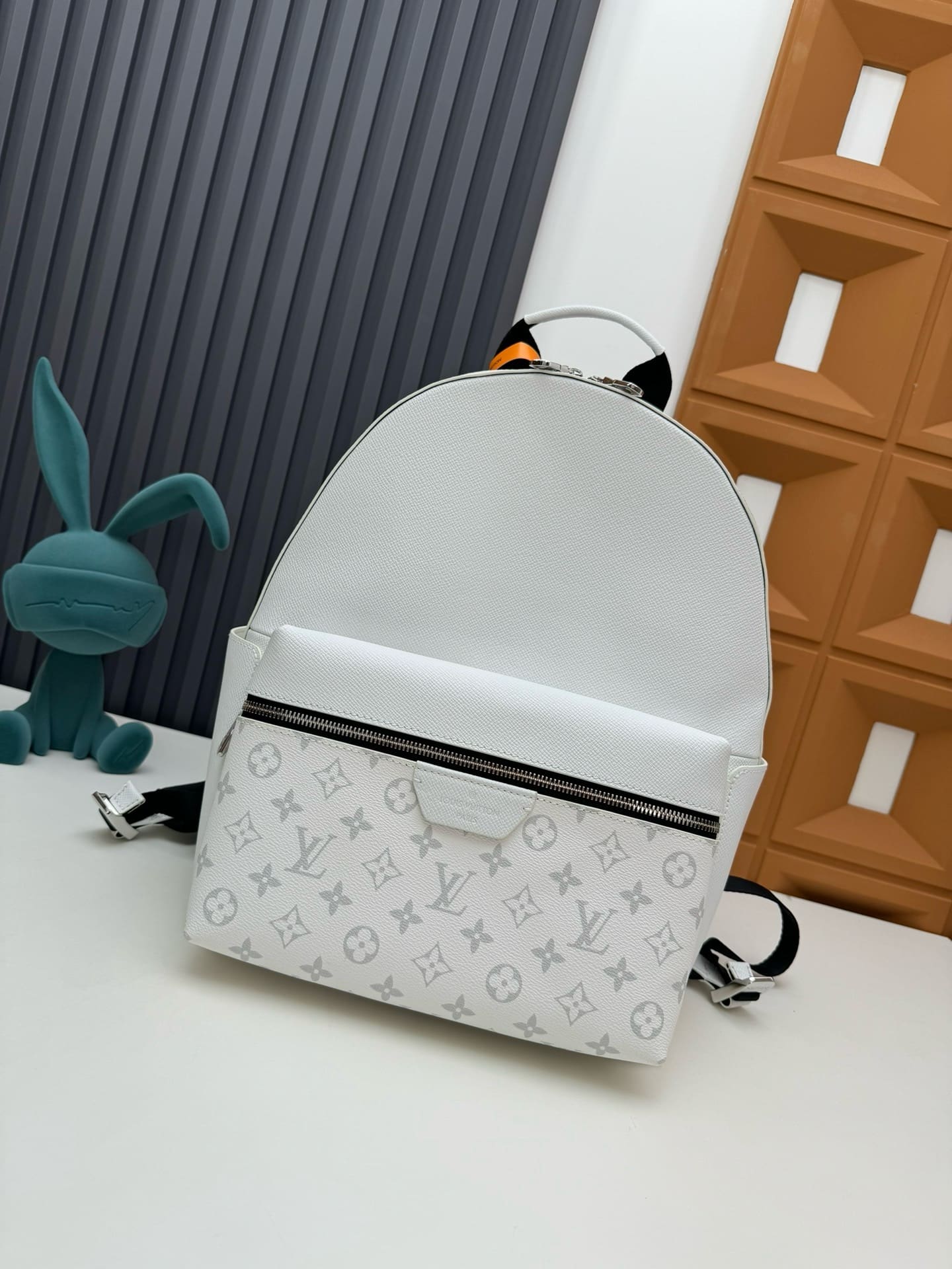 The cool styling of the Discovery Backpack takes on a fashion-forward look as part of the Taigarama line. Finely embossed Taiga cowhide is paired with the House’s signature Monogram canvas in a lustrous shade of white. Ideal for short trips or to carry everyday essentials, it offers multiple compartments, including a special tablet computer pocket.