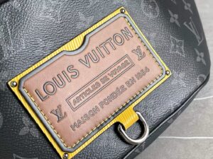 The Discovery Bumbag is revisited in Monogram Eclipse canvas with an embossed leather patch for the Gaston Labels Collection. This special edition was inspired by the vintage luggage labels collected by Louis Vuitton’s grandson, Gaston-Louis Vuitton. This model features an adjustable belt and multiple zipped pockets to securely hold valuables.