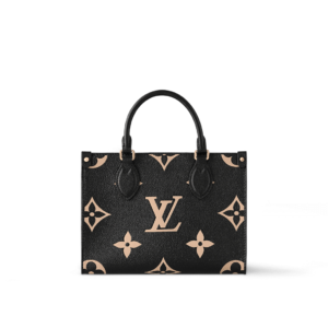 Inspired by Louis Vuitton’s famous Sac Plat from 1968, the OnTheGo PM tote is fashioned in Monogram Empreinte leather, embossed with a Medium Bicolor Monogram pattern. This smaller version of the original OnTheGo fits essentials such as an iPad Mini. Articulated top handles and an adjustable removable strap offer a variety of carry options.
