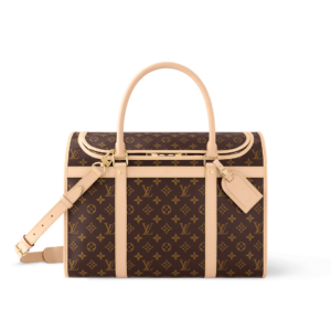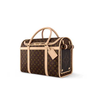 Louis Vuitton’s classic Dog Carrier has been updated with a sleek design and handy new functions. Styled in Monogram canvas with natural cowhide trim like the historic version, it’s designed for comfort with plush carpet and a soft ventilation net. Easy to carry with its adjustable shoulder strap, it’s the stylish, practical way to travel with a pet.