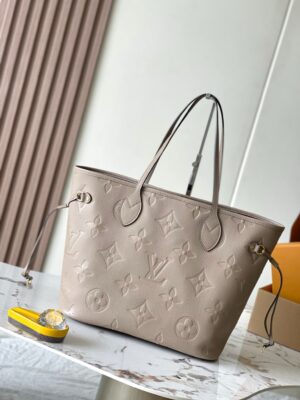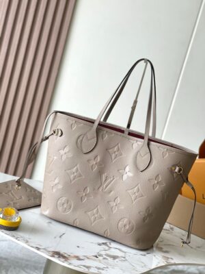 The essential Neverfull MM tote now comes in embossed Monogram Empreinte leather. Its generous dimensions make this bag ideal for everyday use while the long shoulder handles and supple leather mean it’s comfortable to carry. With the side laces cinched, this roomy carryall becomes a stylish city bag. It can be worn over the shoulder or on the elbow.