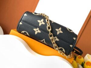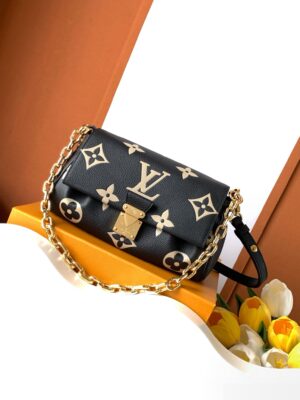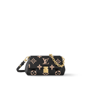 The Favorite is a fashionable bag made from supple grained leather with an oversized embossed Monogram pattern. Feminine pleats bring a couture touch while the gold-color magnetic lock evokes Louis Vuitton’s heritage. A removable and adjustable strap invites short-shoulder carry or cross-body wear, while a bold detachable gold-color chain is ideal for glamorous evenings.