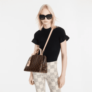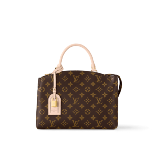The timelessly feminine Petit Palais tote bag is made from Monogram canvas, trimmed with natural leather, and lined in a lush red textile. A removable and adjustable strap, in addition to Toron top handles, enables multiple carrying options. The gold-color padlock on the luggage tag evokes the House’s travel heritage.
