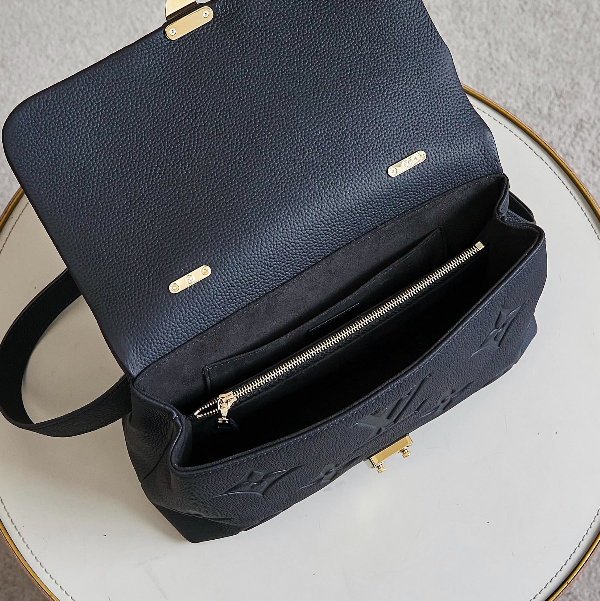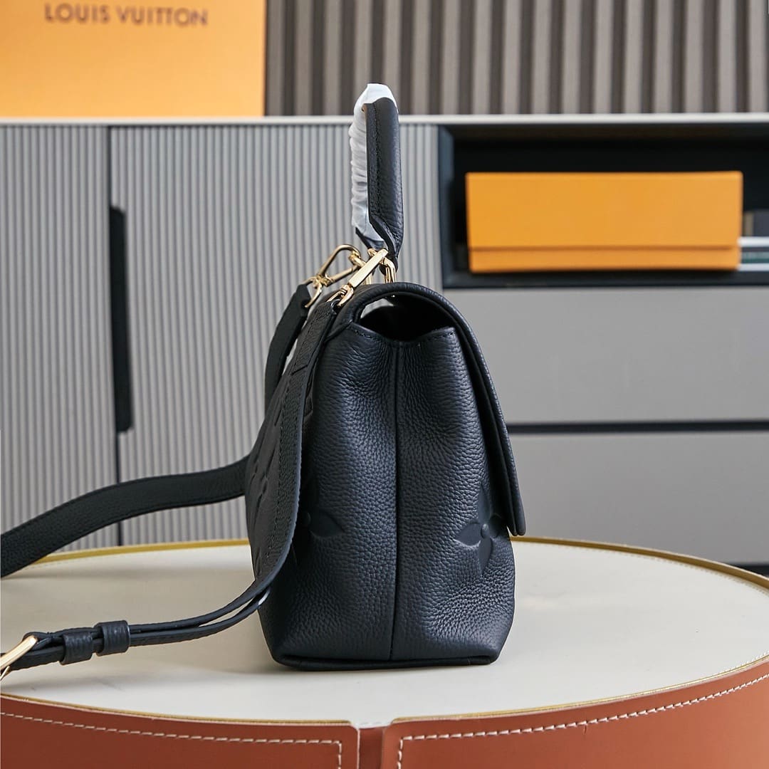 With its single, articulated top handle and embossed Monogram Empreinte leather, this Madeleine MM handbag is the House’s latest, day-to-business, must-have accessory. The leather key bell and gold-color S-lock evoke the House’s travel heritage while the removable and adjustable strap provides carry options.