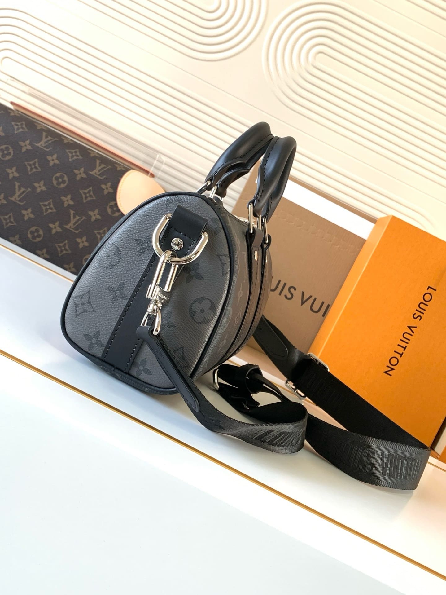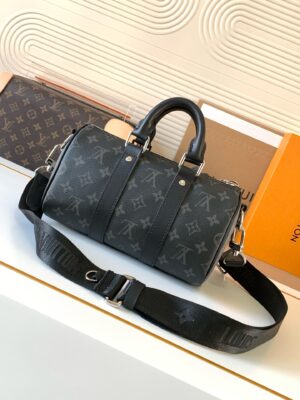 The bestselling Keepall 25 now comes in Monogram Eclipse Reverse canvas, an elegant variation on Louis Vuitton’s most iconic pattern. This ultra-functional contemporary city bag features all the signature Keepall details, from the twin reinforcement strips to the leather name tag. With a zipped closure to keep belongings secure but easily accessible, it’s an ideal everyday companion.