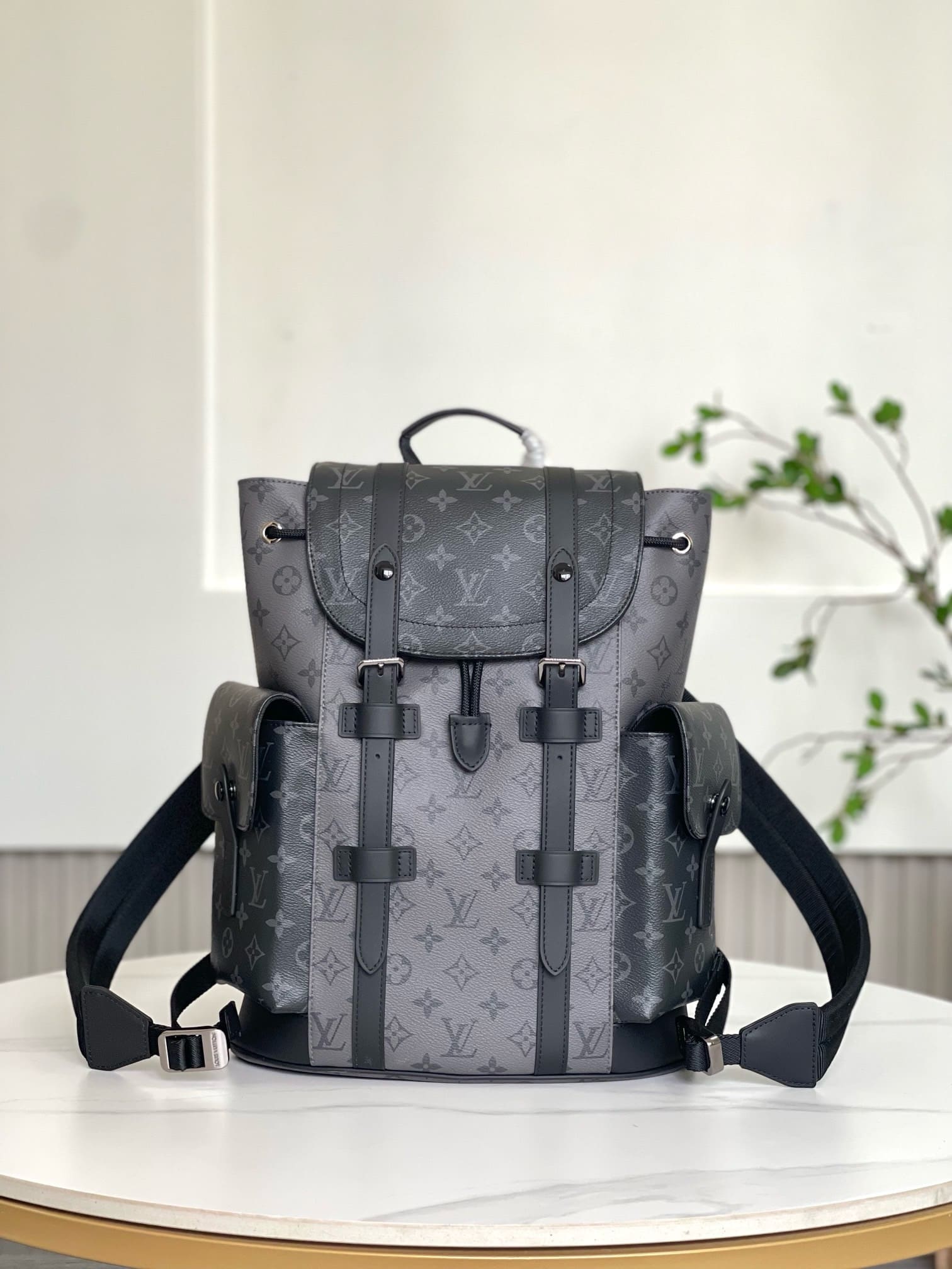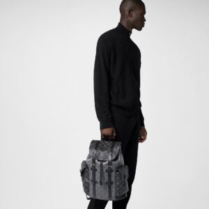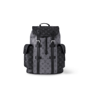 The Christopher PM backpack takes on a striking aspect in Monogram Eclipse Reverse canvas with black-leather trim. Two side pockets enable quick access to essentials while the leather flap with press-stud closure keep belongings safe. The Christopher PM is inspired by the design of the rugged hiking rucksack, rendered here in smaller dimensions.