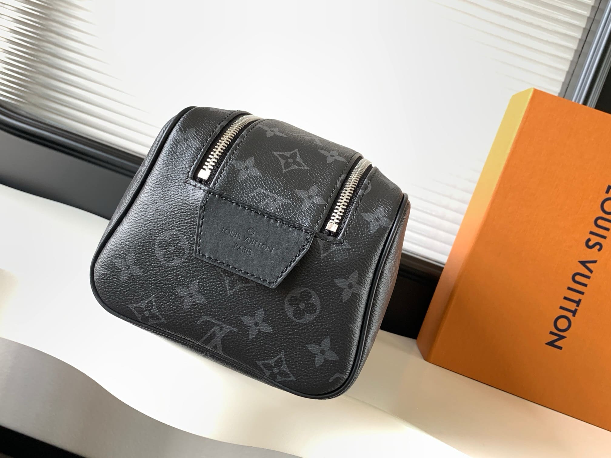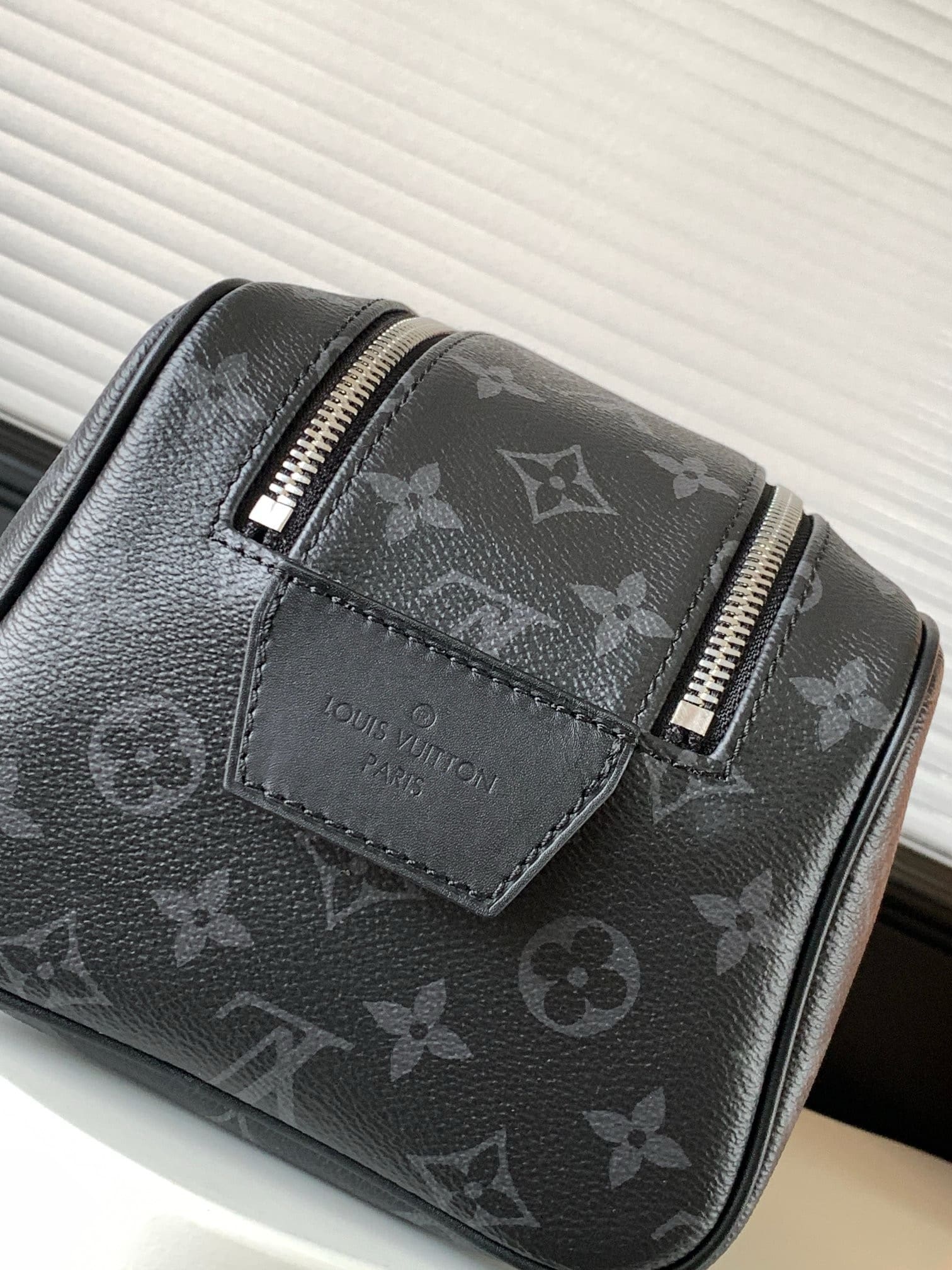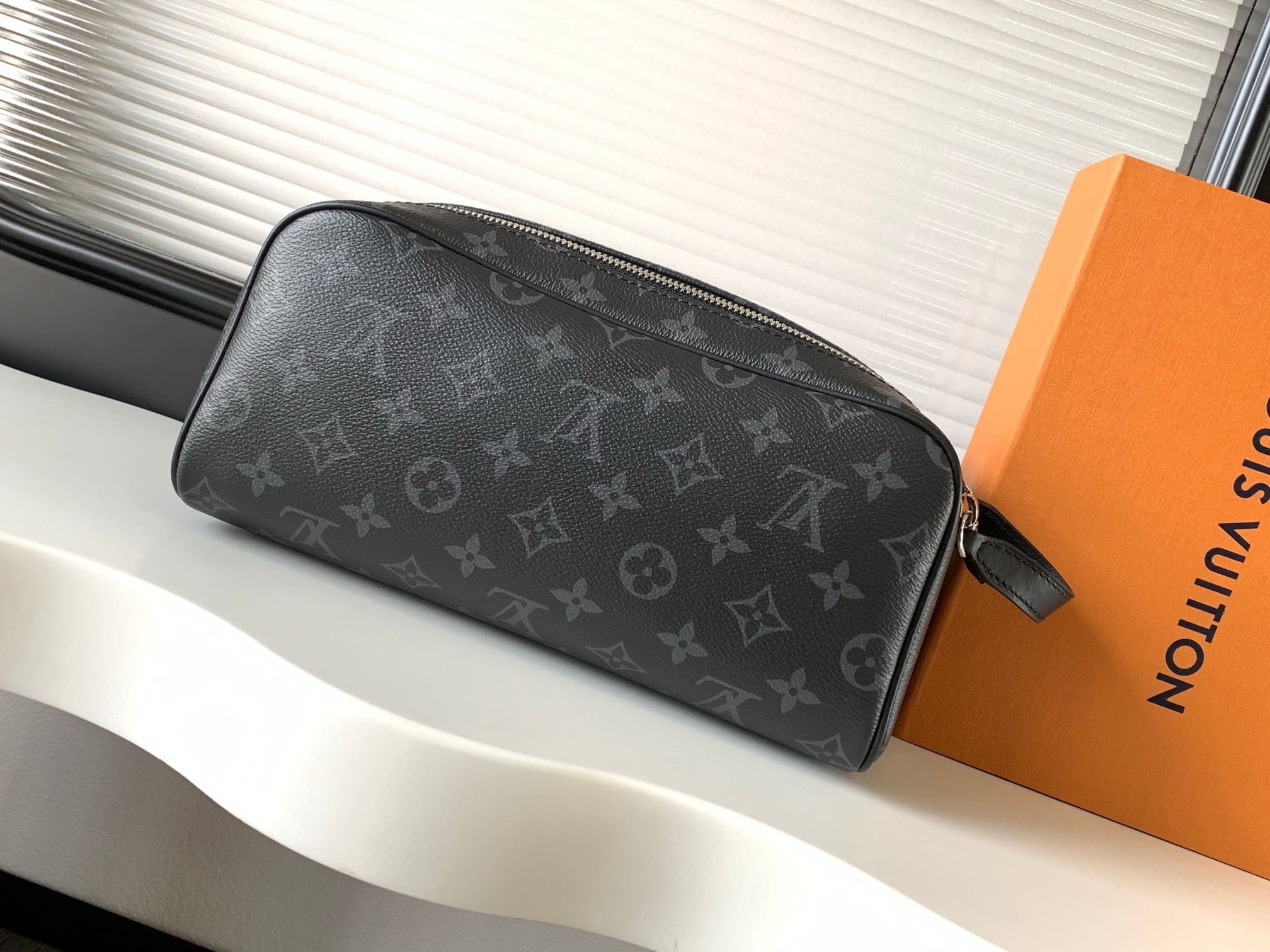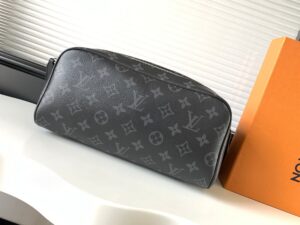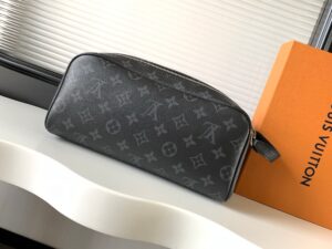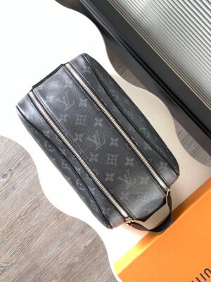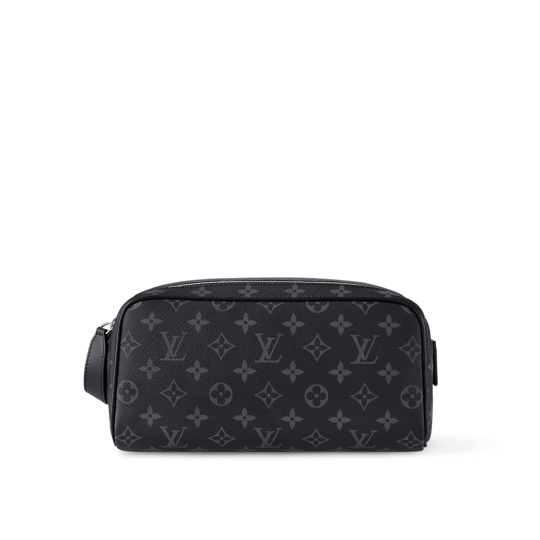 A discreet choice for Monogram lovers, this Dopp Kit toiletry bag in Monogram Eclipse canvas has plenty of room for all your travel essentials, a double zipper for secure protection and a wide opening for easy access.