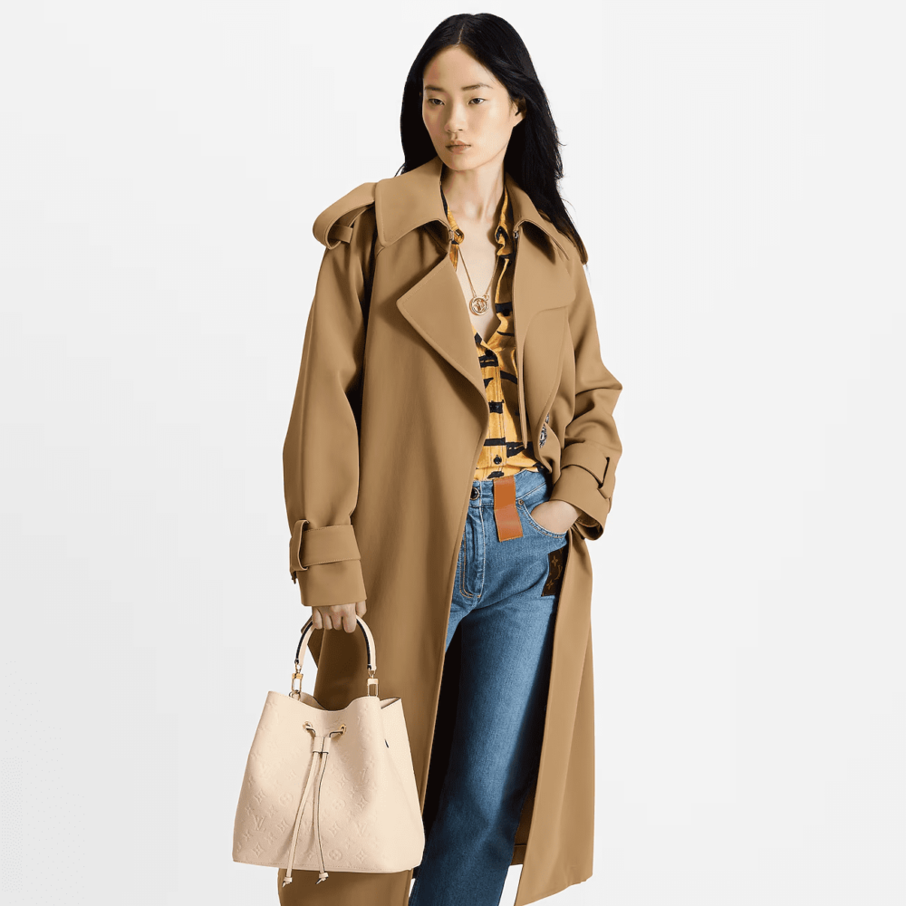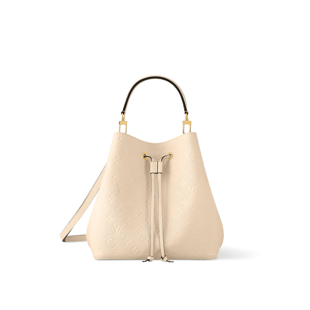 The House’s emblematic bucket bag, the NéoNoé MM, is fashioned from luminous cream-color Monogram Empreinte leather, making it stylish no matter the season. The cream-color microfiber lining and Monogram Flowers and LVs discretely embossed into the leather bring understated charm. A top handle and leather shoulder strap offer a variety of carry options.
