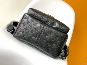 Made from calf leather with an embossed Monogram pattern, the Discovery Backpack combines style, comfort, and functionality. Its supple, body-friendly shape features three outside pockets for easy access to essentials and numerous inside pockets to keep things organized. The black-color hardware completes the understated design.