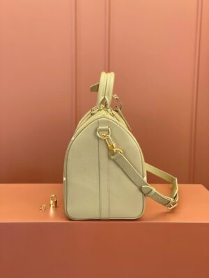 The Keepall Bandoulière 45 is made from Monogram Empreinte embossed leather, with oversized Monogram Flowers and LVs in a lighter color. The tone-on-tone leather on the lateral bands, top handles, and removable shoulder strap, perfectly complement the gold-color hardware. The inside zipped pocket helps keep things organized.