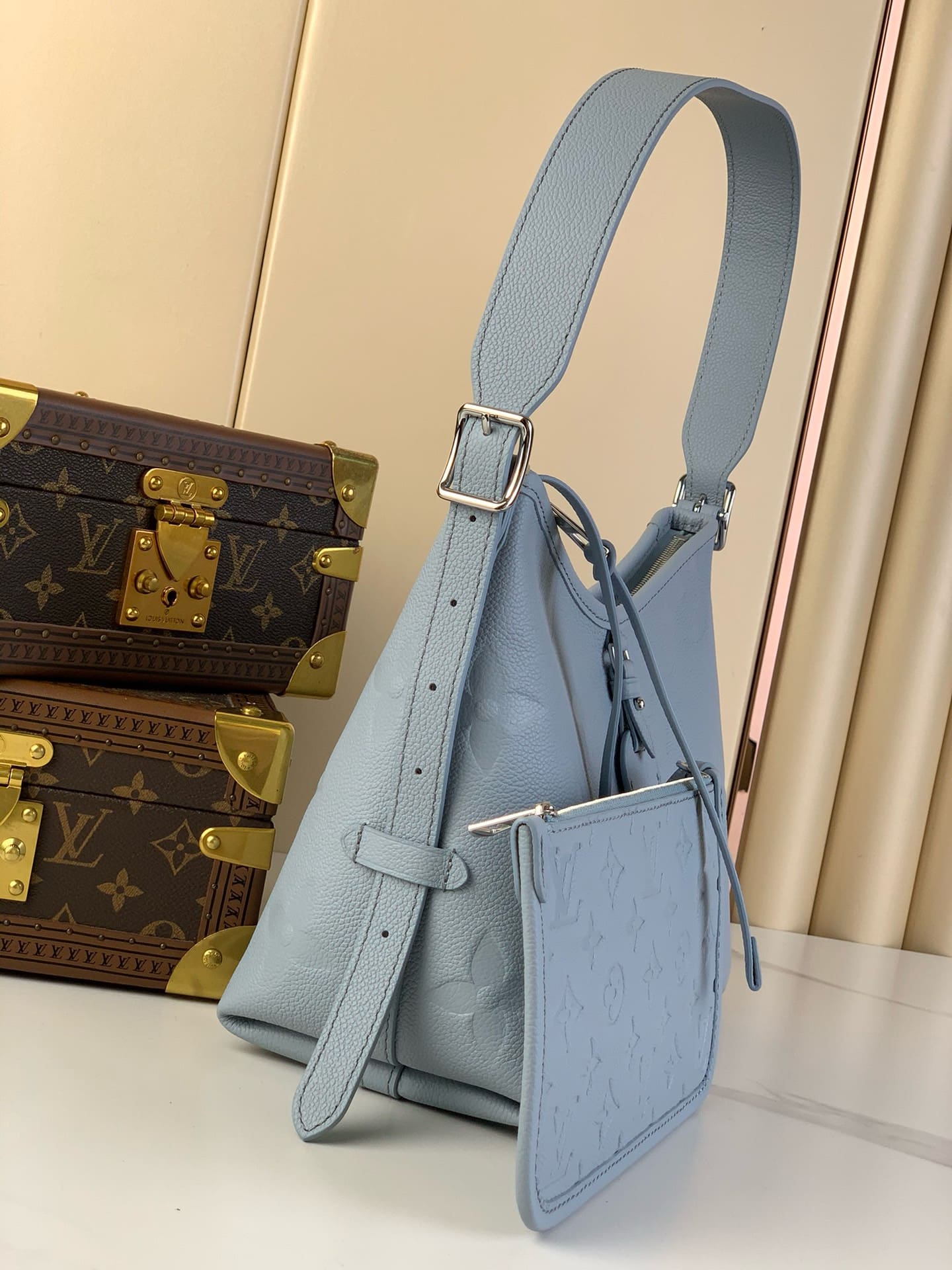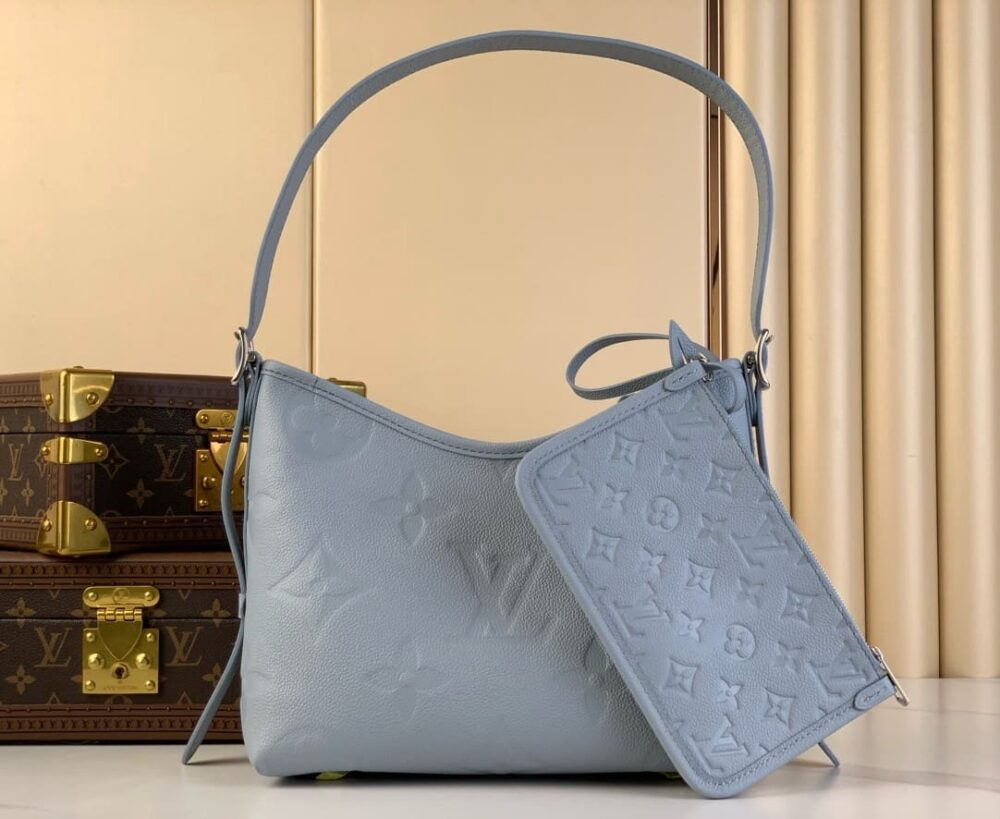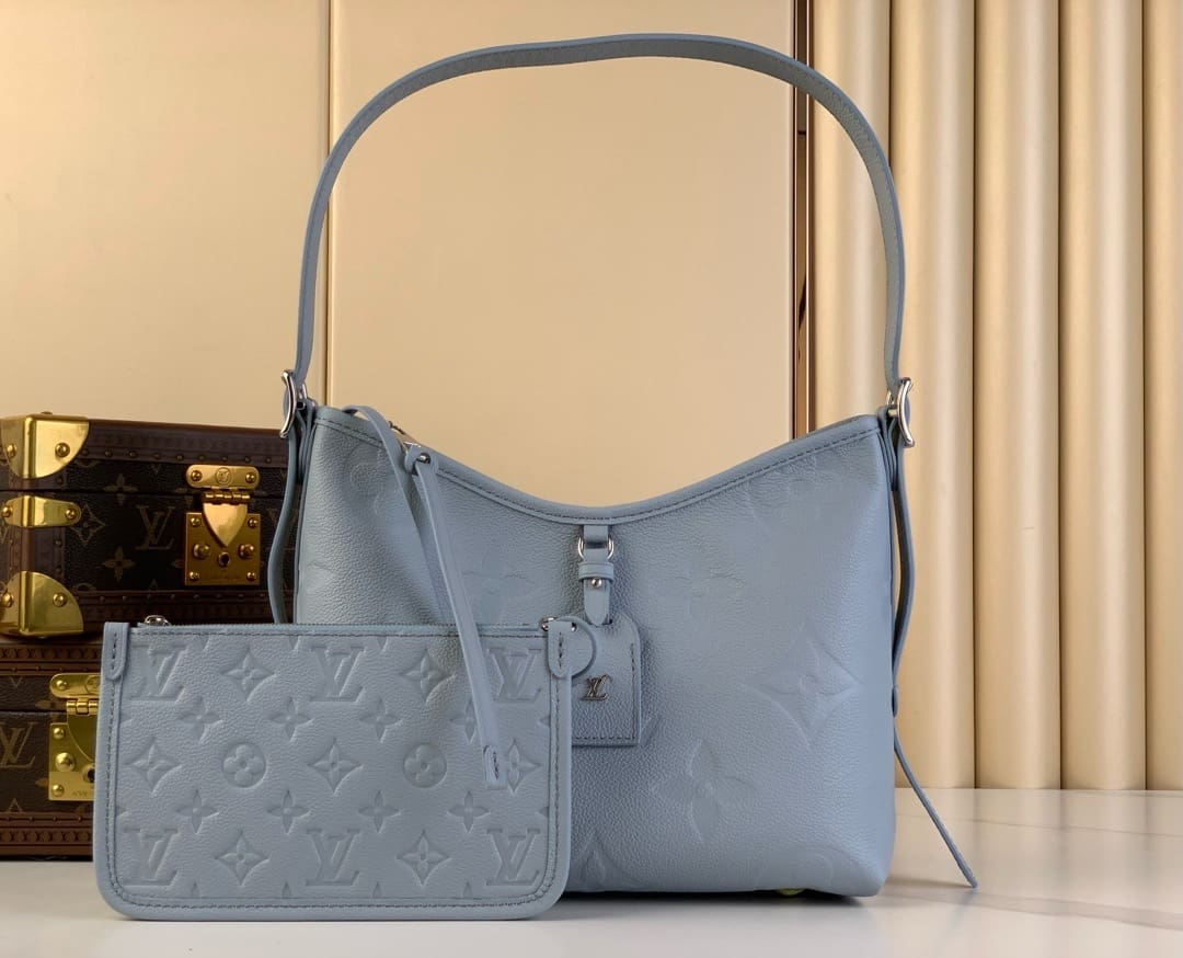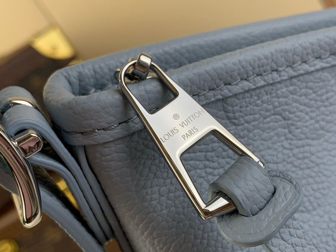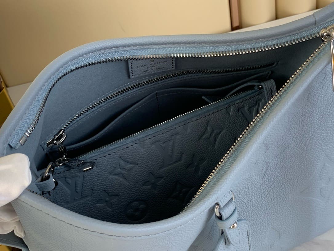 The CarryAll PM is made from Monogram Empreinte grained leather, with the Monogram motif discretely embossed into the cowhide. The silver-color hardware, including the LV Initials on the removable name tag, bring understated elegance. Inside there are numerous pockets and a removable zipped pouch attached to the bag by a leather cord.