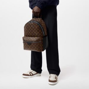 The pairing of Monogram Macassar canvas with black cowhide-leather trim and palladium-color hardware brings classic elegance to the Discovery Backpack’s modern lines. The roomy outside pocket makes it easy to get at essentials. Inside there are three pockets, one designed for an iPad. Adjustable leather straps and a top handle give carry options.