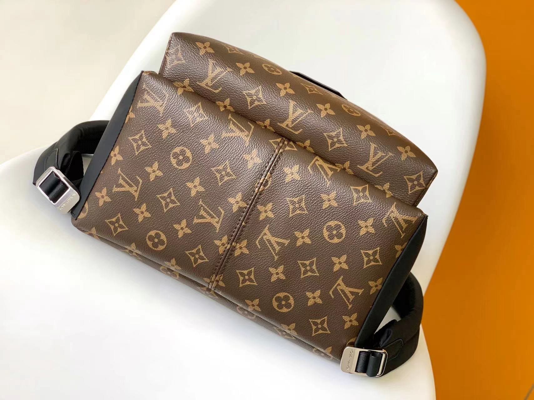 The pairing of Monogram Macassar canvas with black cowhide-leather trim and palladium-color hardware brings classic elegance to the Discovery Backpack’s modern lines. The roomy outside pocket makes it easy to get at essentials. Inside there are three pockets, one designed for an iPad. Adjustable leather straps and a top handle give carry options.