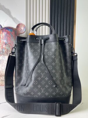 Ein Verschluss mit Zugband, eine abgerundete Form und ein angenehmer Schulterriemen aus Textil — die Maxi Noé Sling Bag in Monogram Eclipse Canvas vereint mühelos Funktion und zeitgemäßen Stil. Der Griff an der Oberseite, mehrere D-Ringe und ein verstellbarer Riemen ermöglichen das Tragen in der Hand, über der Schulter als Tote oder diagonal am Rücken als Sling Bag.