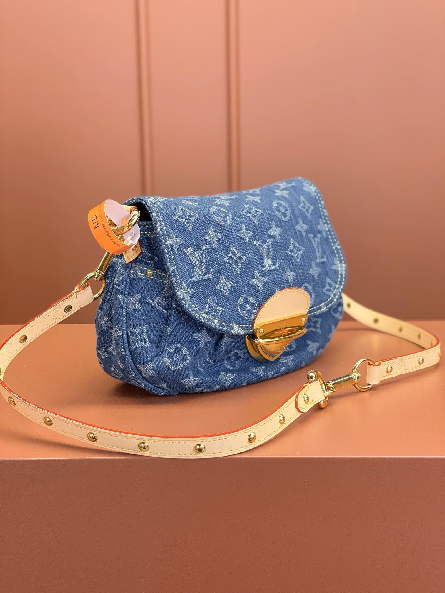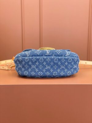 The Sunset handbag is made from Monogram Denim canvas and is adorned with the House’s tuck lock. Creating Monogram Denim is a multi-step process. First the Monogram pattern is woven into the Global Organic Textile Standard-certified cotton which is then bleached. Once assembled, each bag is stonewashed to give it a unique aspect. The Sunset can also be styled for cross-body wear, thanks to an extra extension strap included with the piece.