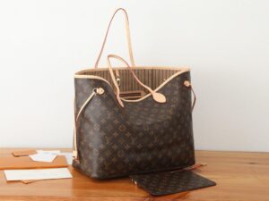 The Neverfull GM tote unites timeless design with heritage details. Made from supple Monogram canvas with natural cowhide trim, it is ultra-roomy but never bulky, with side laces that cinch for a sleek allure or loosen for a more casual look. Slim, comfortable handles slip easily over the shoulder or arm. Lined in colorful textile, it features a removable pouch which can serve as a clutch or an extra pocket.
