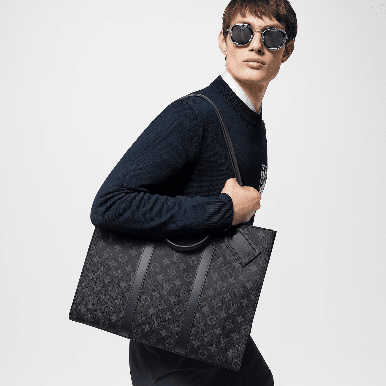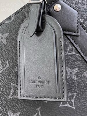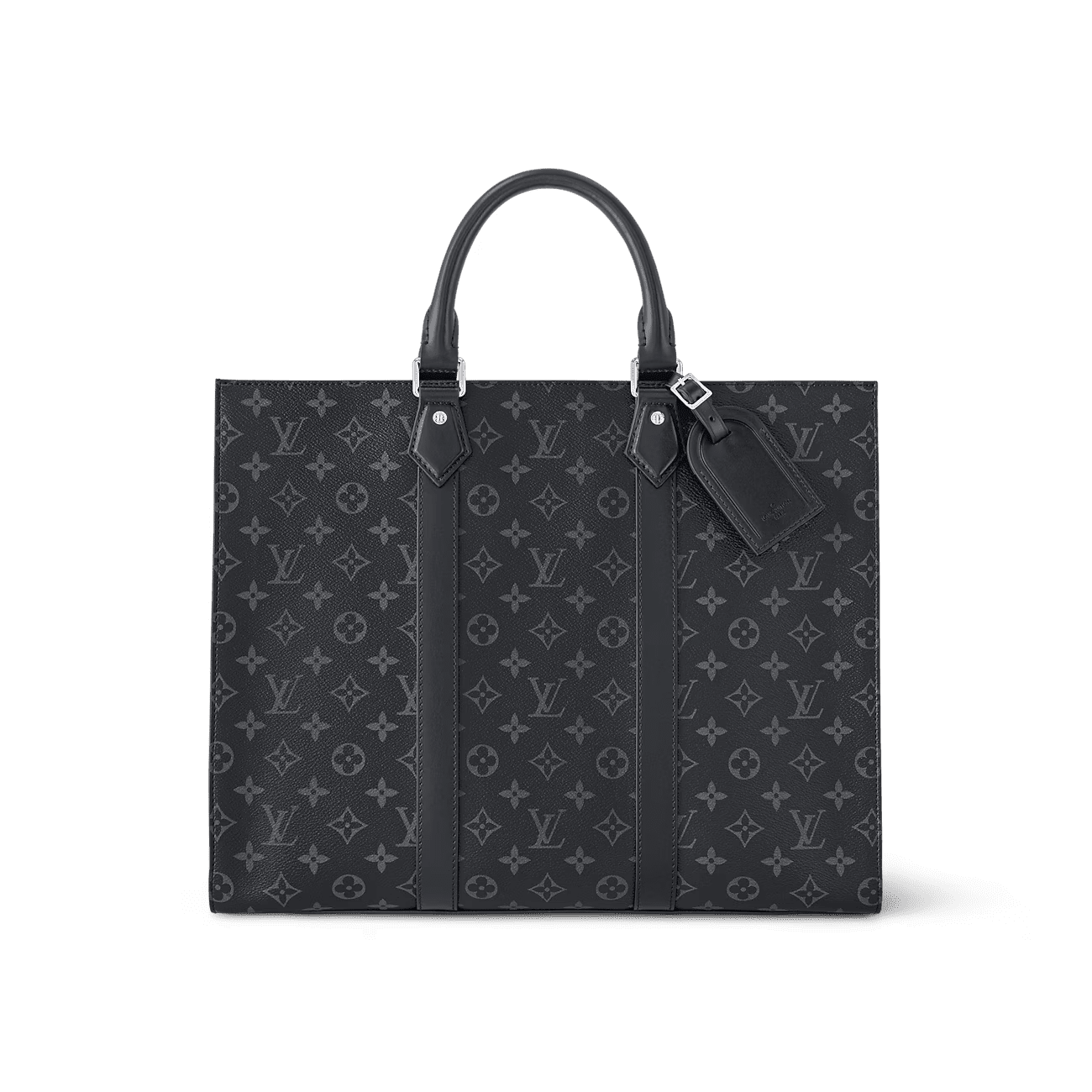 Monogram Eclipse canvas brings masculine elegance to the Sac Plat 24H. Recognizable by its lateral bands, handle mounts, and removable name tag, this tote boasts a large capacity and a mix of zipped and flat pockets, including one large enough for a laptop. It has short handles for hand carry, and long handles for shoulder carry.