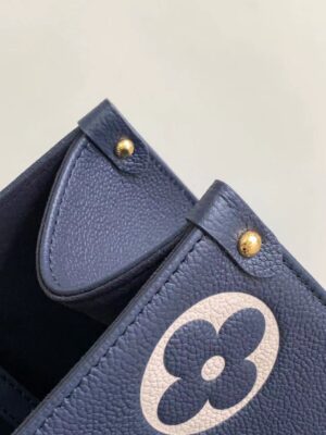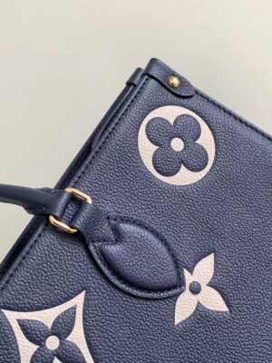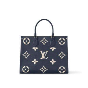 Part of the Nautical Collection, the OnTheGo MM tote in Monogram Empreinte cowhide leather features the emblematic Monogram pattern, embossed and then printed onto the leather. Roomy enough for a 13-inch laptop, it features two sets of handles: two shorter handles for hand carry and two longer handles for shoulder wear.