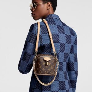 The Maison salutes its travel heritage with the Just In Case handbag. Made from Monogram canvas with natural cowhide-leather trim, this compact model keeps essentials – smartphone, keys, makeup – always close at hand. Detailed with a signature padlock and key bell, the bag is fitted with a leather-braided chain and a leather strap, both removable, for a variety of modern carry options.