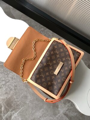 With its supple construction, this new Dauphine Soft GM in Monogram canvas with natural cowhide-leather trim is remarkably comfortable to carry. Unveiled at the Spring-Summer 2024 Show, it features all the signatures of the classic Dauphine bag: the emblematic LV Circle in a rectangle lock, a removable gold-color chain, and a detachable shoulder strap.