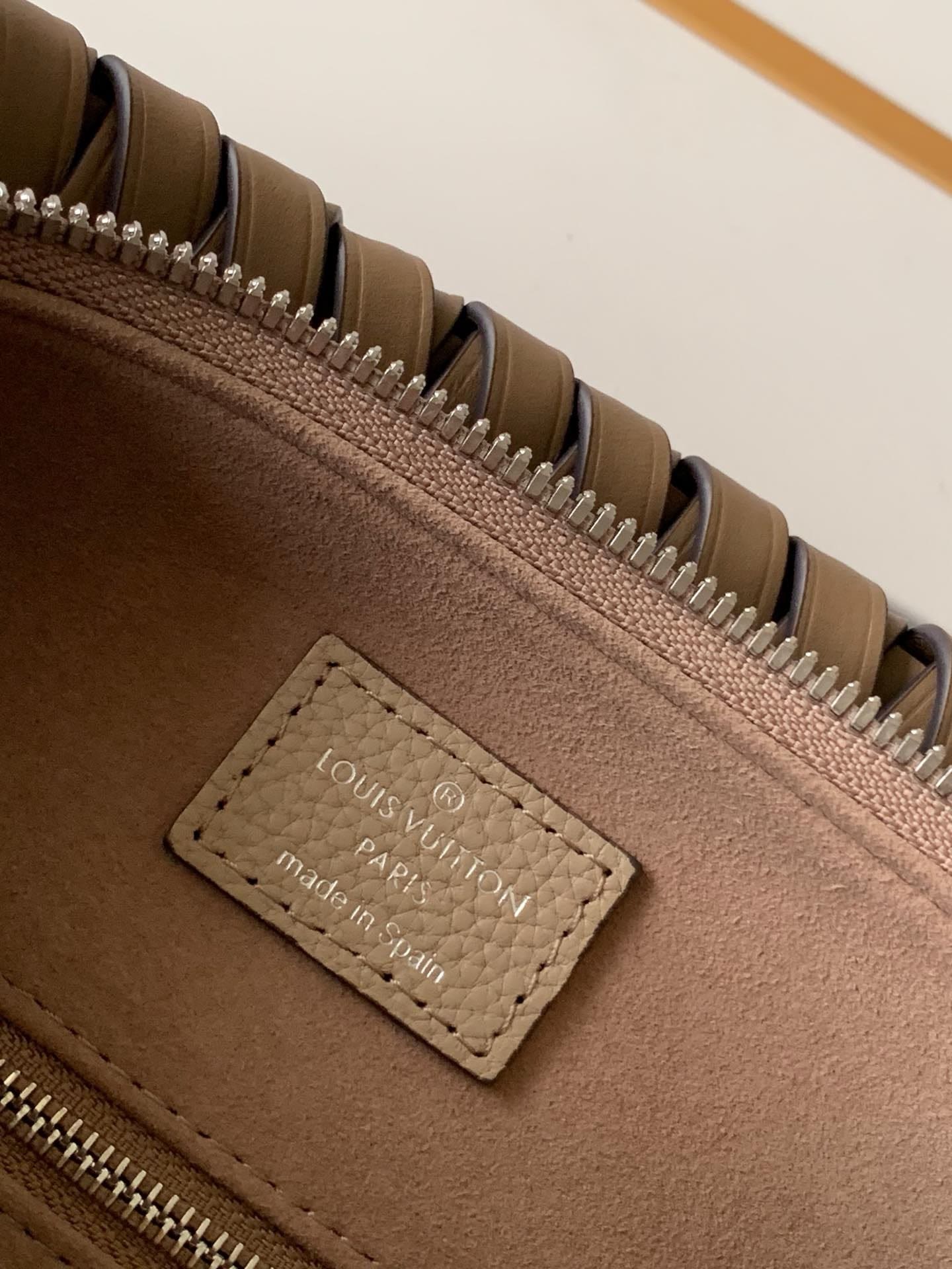 •Oversized leather LV charm