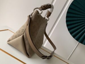The Beaubourg Hobo MM bag is made from Mahina calf leather perforated with the Monogram pattern. It boasts a stylishly braided-leather top handle, with hand-painted edge-dyeing along the braids. The leather zip pulls and large LV charm sign the bag. A detachable, wide leather strap means that this supple bag feels comfortable against the body.