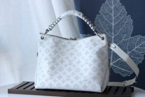 The Beaubourg Hobo MM bag is made from Mahina calf leather perforated with the Monogram pattern. It boasts a stylishly braided-leather top handle, with hand-painted edge-dyeing along the braids. The leather zip pulls and large LV charm sign the bag. A detachable, wide leather strap means that this supple bag feels comfortable against the body.