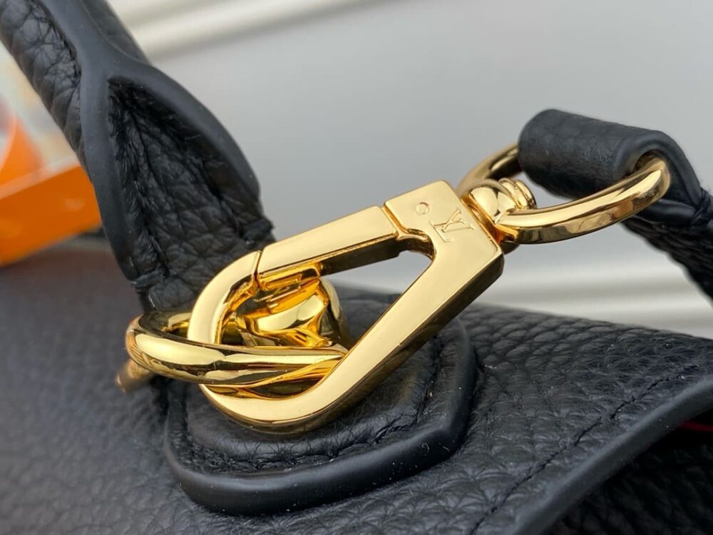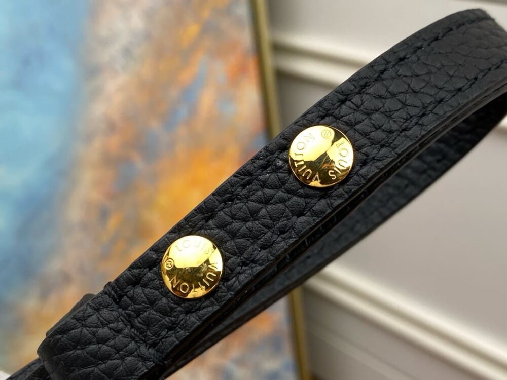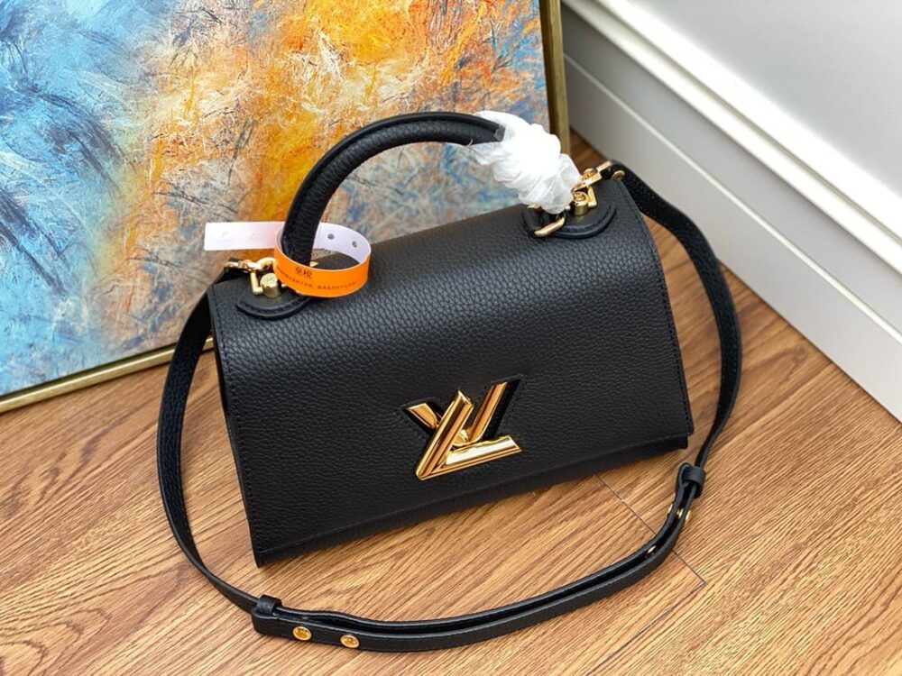 Introducing the Twist One Handle PM handbag in Taurillon leather. Its striking shape, elegant top handle, and iconic LV twist-lock make it a sophisticated everyday bag. In addition to the top handle, there’s a removable strap for comfortable shoulder and cross-body carry. The bag’s interior is lined in colored leather.