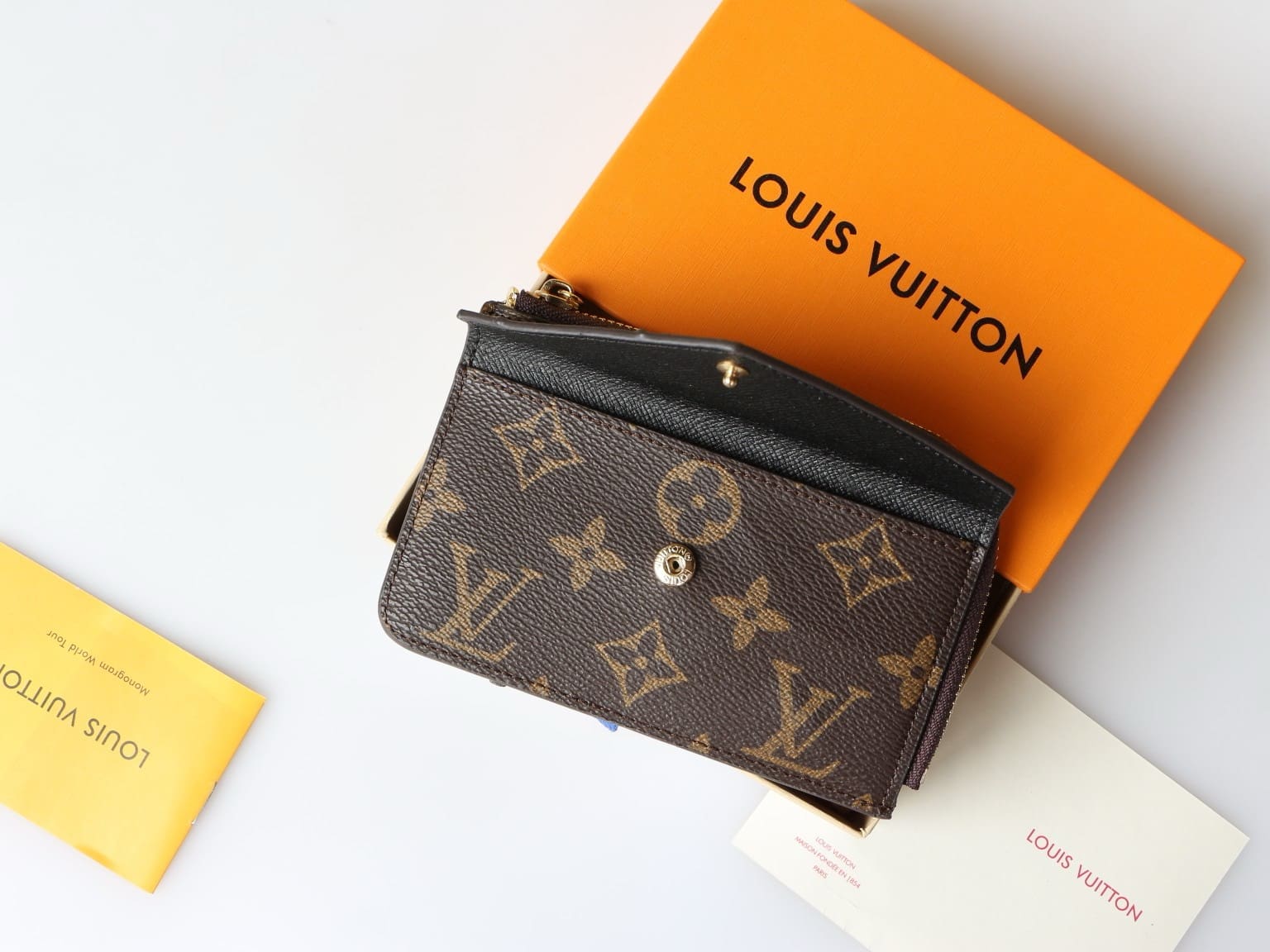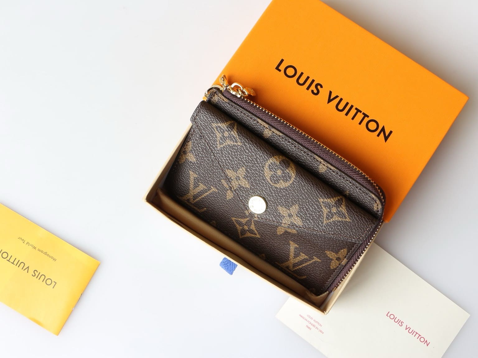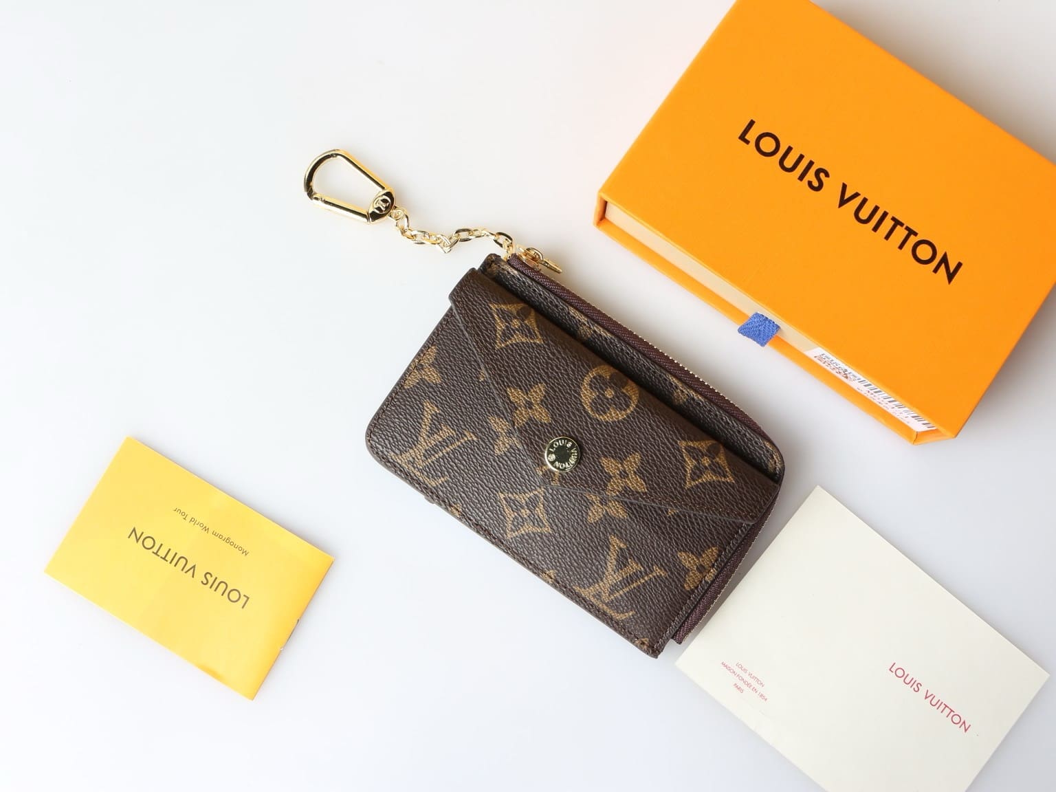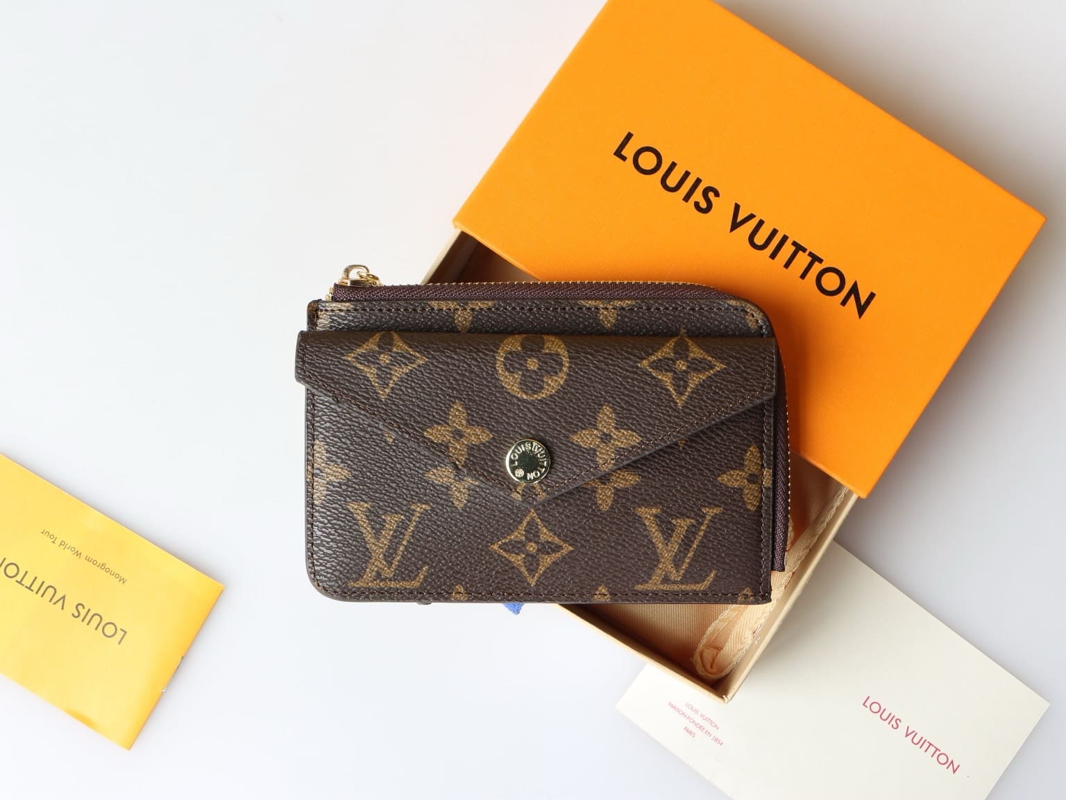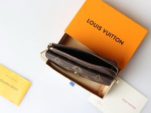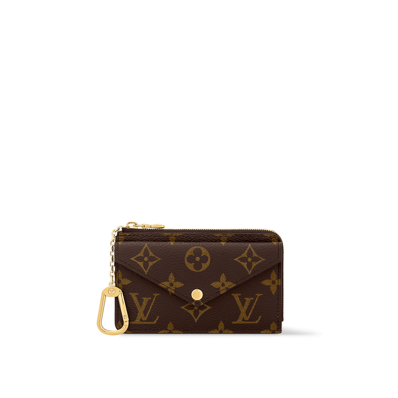 The Card Holder Recto Verso combines Monogram canvas with smart leather trim. It offers an envelope-style pocket at the front, an in-between pocket for folded bills, and a zipped compartment with a wide, L-shaped opening for coins. At the back, three card slots complete this ingenious, all-in-one accessory, which can be hooked onto a bag or belt.