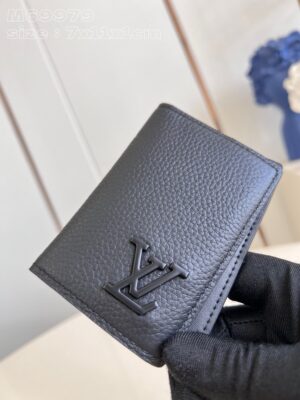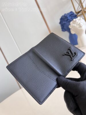 The new LV Aerogram version of the Pocket Organizer is styled in black calf leather as fine and soft as an old-fashioned aerogram. Adorned with the “LV” initials in black metal for a low-key signature touch, it’s both elegant and functional, offering an array of compartments and card slots. An ideal complement to any of the LV Aerogram bags.