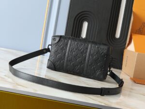 This Soft Trunk Wallet is a cross between a wallet and a compact body bag and is made from Taurillon leather with an embossed Monogram pattern. Its boxy shape and details like the reinforced corners evoke the House’s historic trunks. The removable strap adjusts for comfortable cross-body wear.