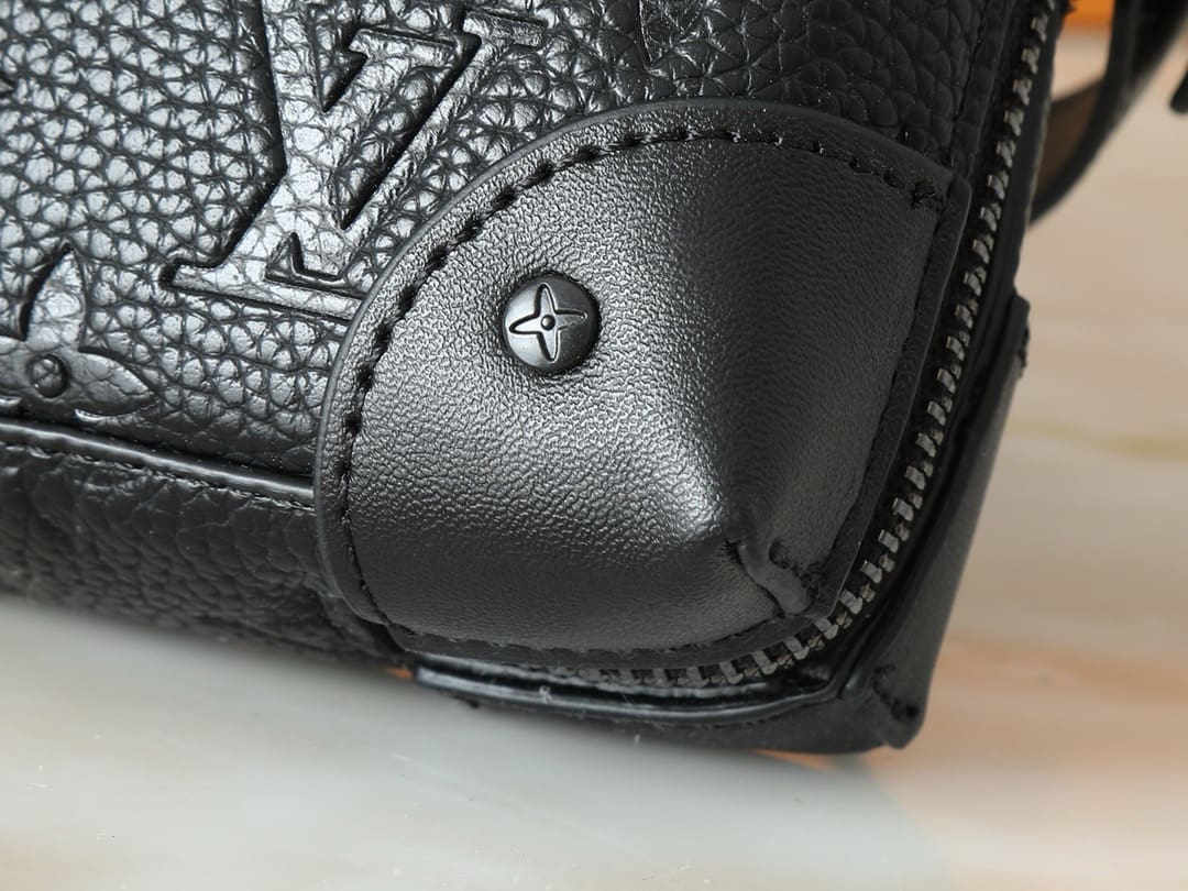This Soft Trunk Wallet is a cross between a wallet and a compact body bag and is made from Taurillon leather with an embossed Monogram pattern. Its boxy shape and details like the reinforced corners evoke the House’s historic trunks. The removable strap adjusts for comfortable cross-body wear.