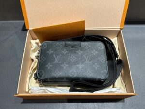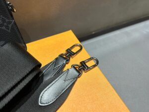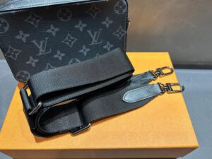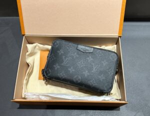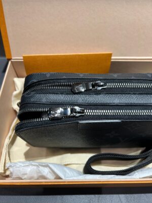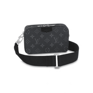 Monogram Eclipse coated canvas Textile lining Cowhide Leather trim Silver hardware 2 exterior zip pockets 6 card slots 2 interior flat pockets Interior zip pockets Strap: Removable, adjustable Strap drop: 15.7 inches Max strap drop: 24.8 inches This model is made in France, Spain, Italy or the United States. The Alpha Wearable Wallet is a versatile compact bag that can be carried in different ways thanks to its adjustable and removable shoulder straps. It’s made from Monogram Eclipse canvas and trimmed in black leather. Its wide opening and side gussets provide easy access to interior contents. Perfect for carrying a phone (or two) and a wallet.